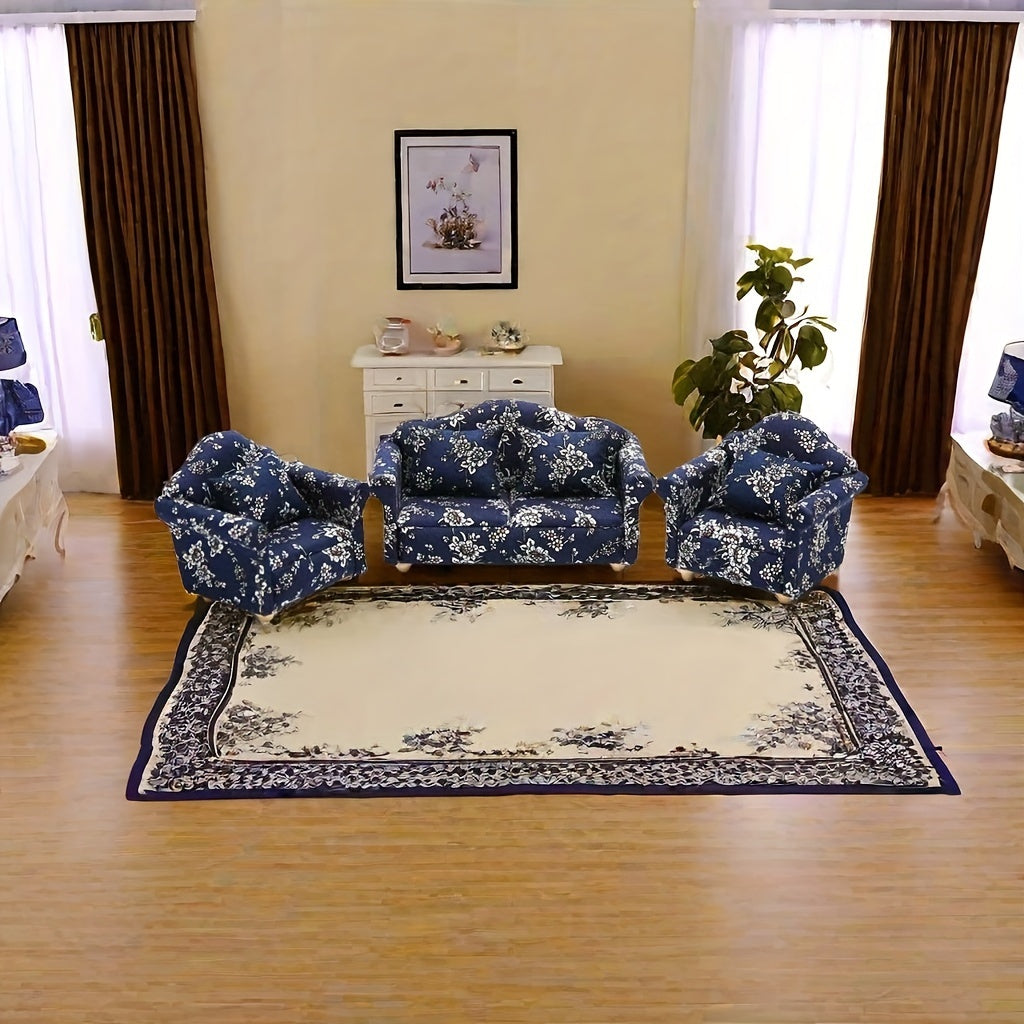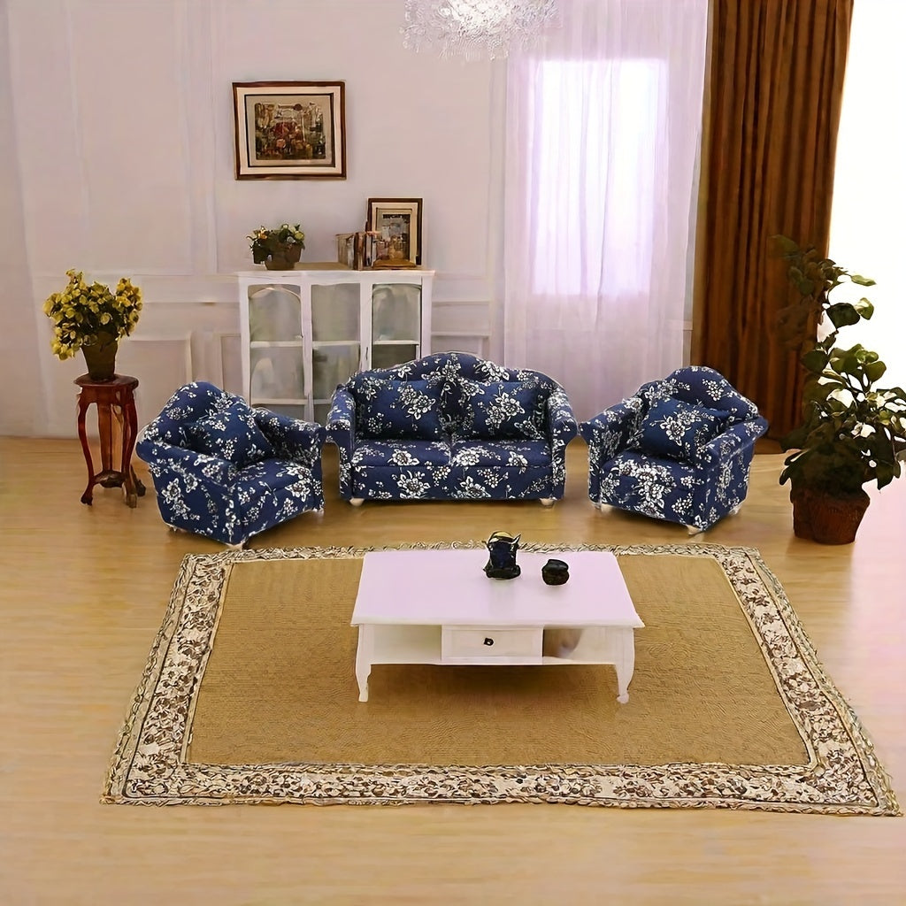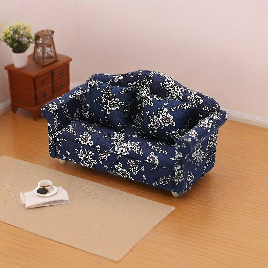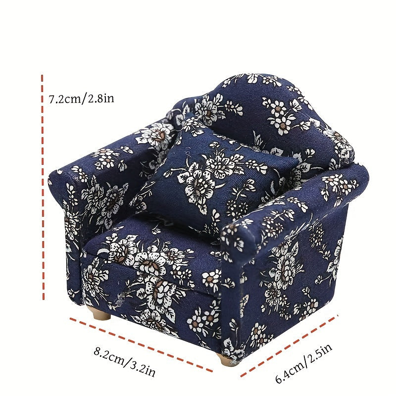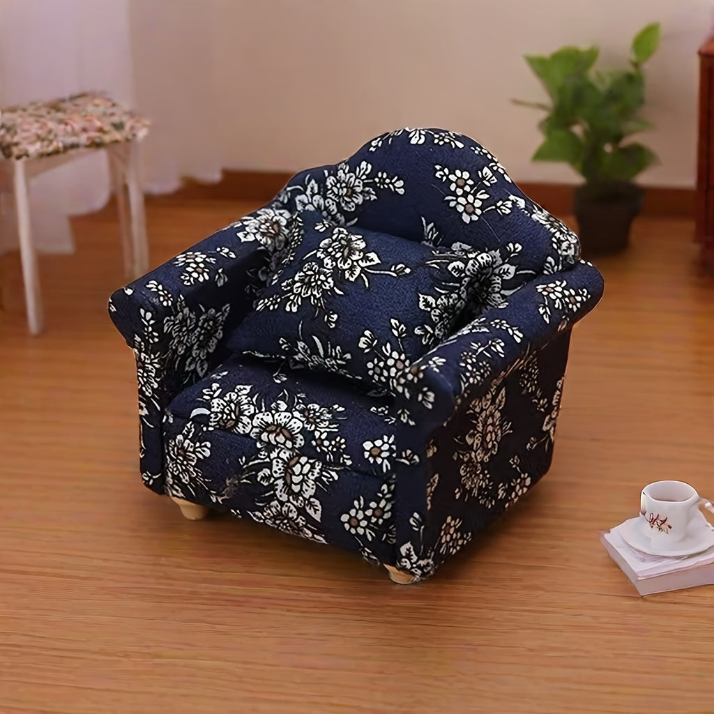 Красивый небольшой диванчик с синим цветочным узором, изготовленный вручную из дерева — уникальный предмет мебели, идеально подходящий для создания непринужденной атмосферы и преподносимый в качестве особого подарка.