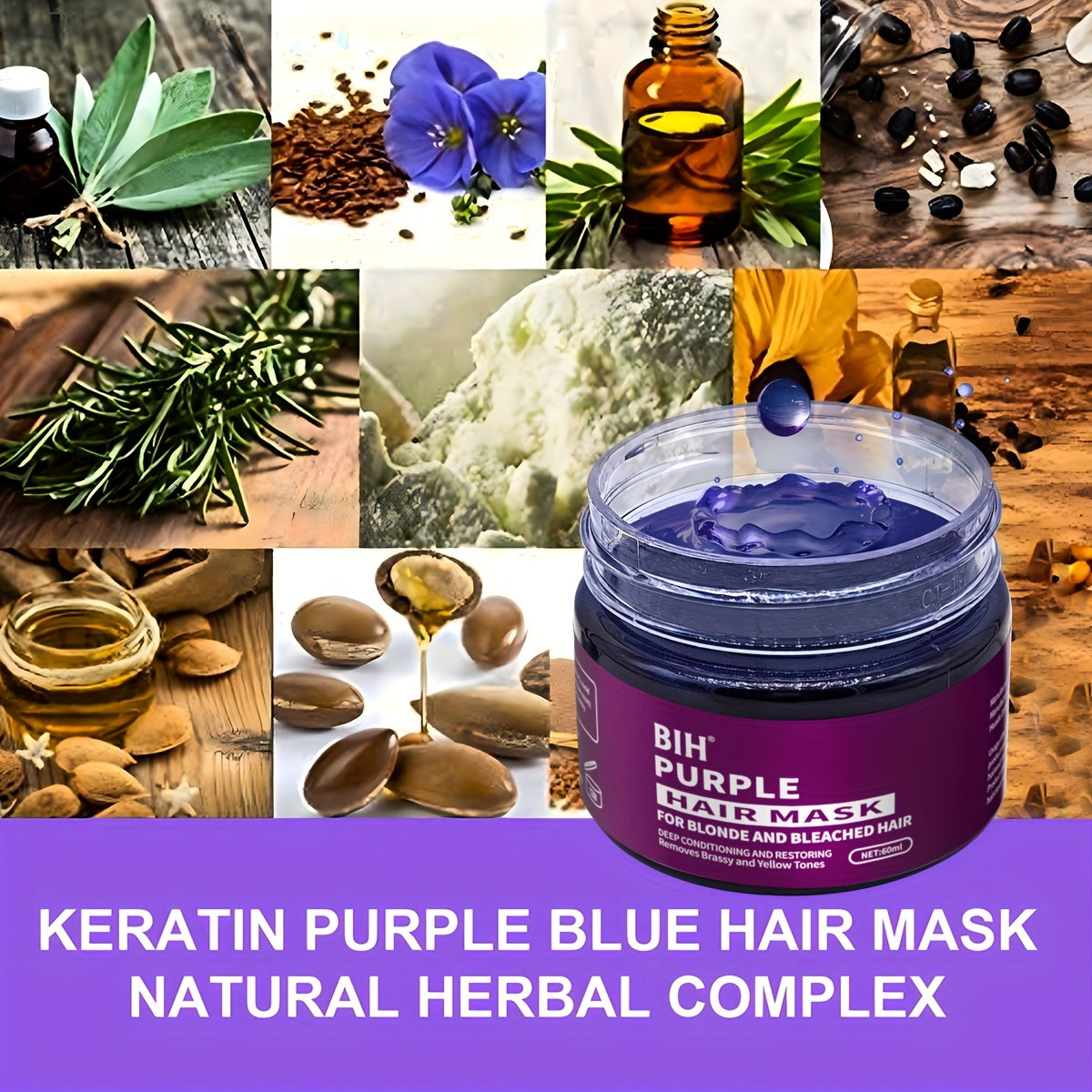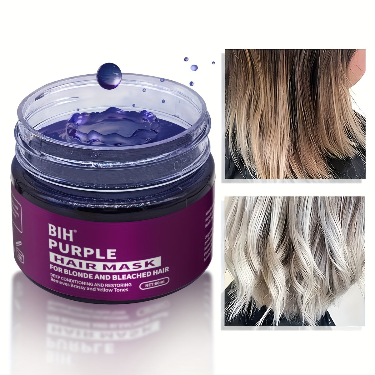 Маска для волос BHI Purple осветляет и тонизирует блондинистые волосы до платинового, нейтрализуя желтые оттенки.
