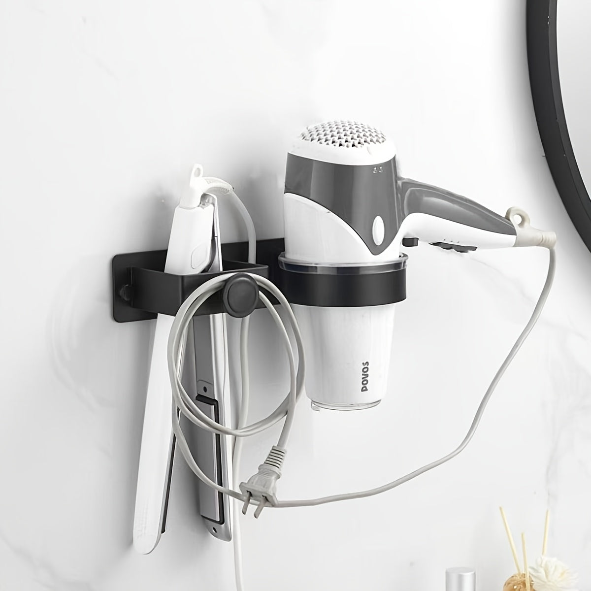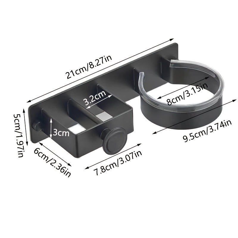 Черный алюминиевый настенный держатель для фена с крючками для ванной или парикмахерской