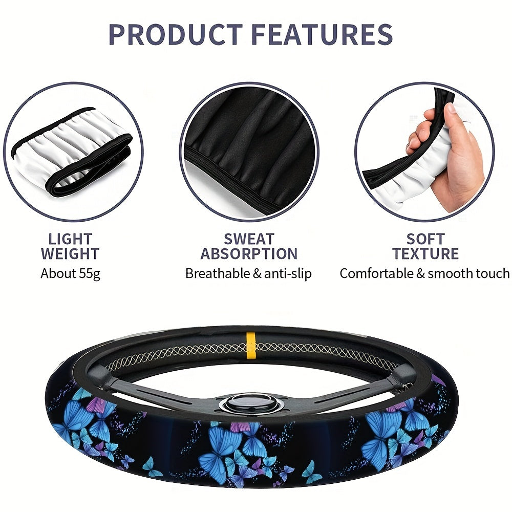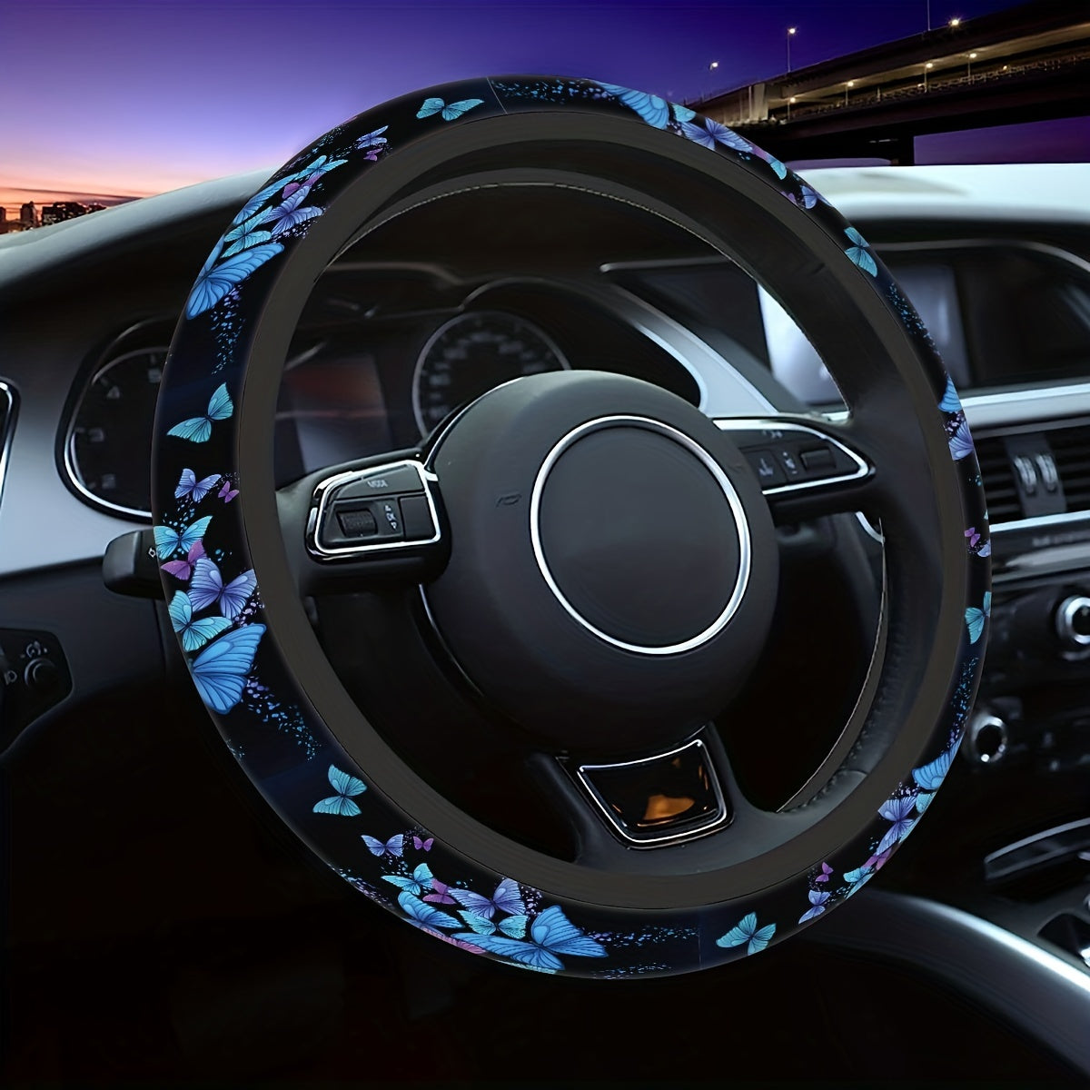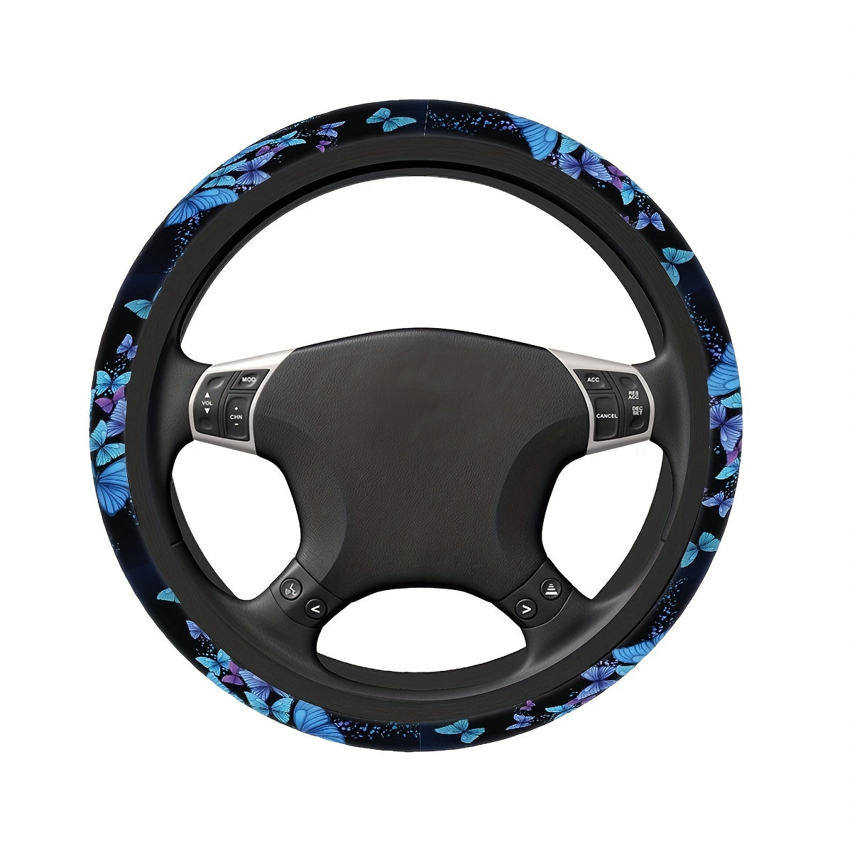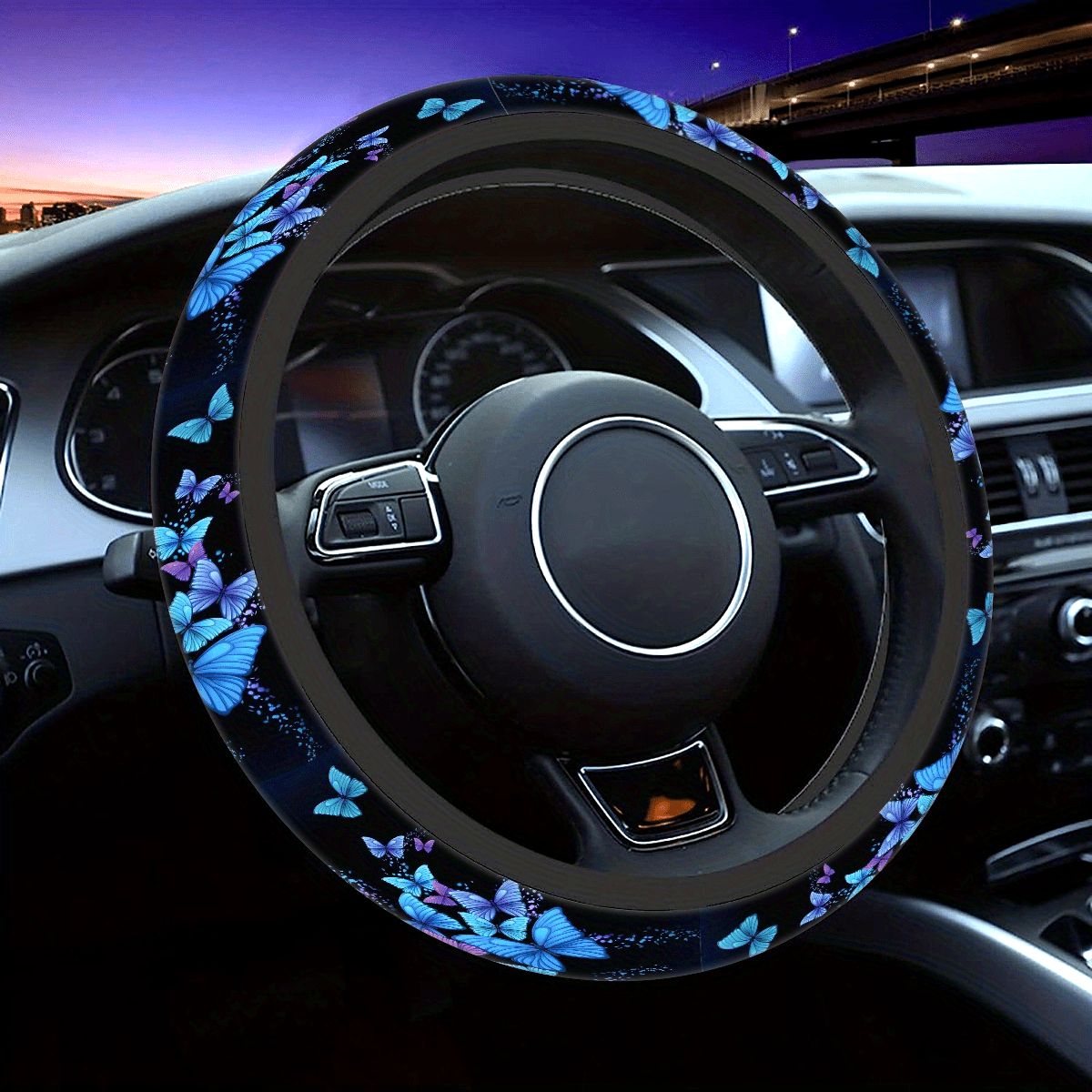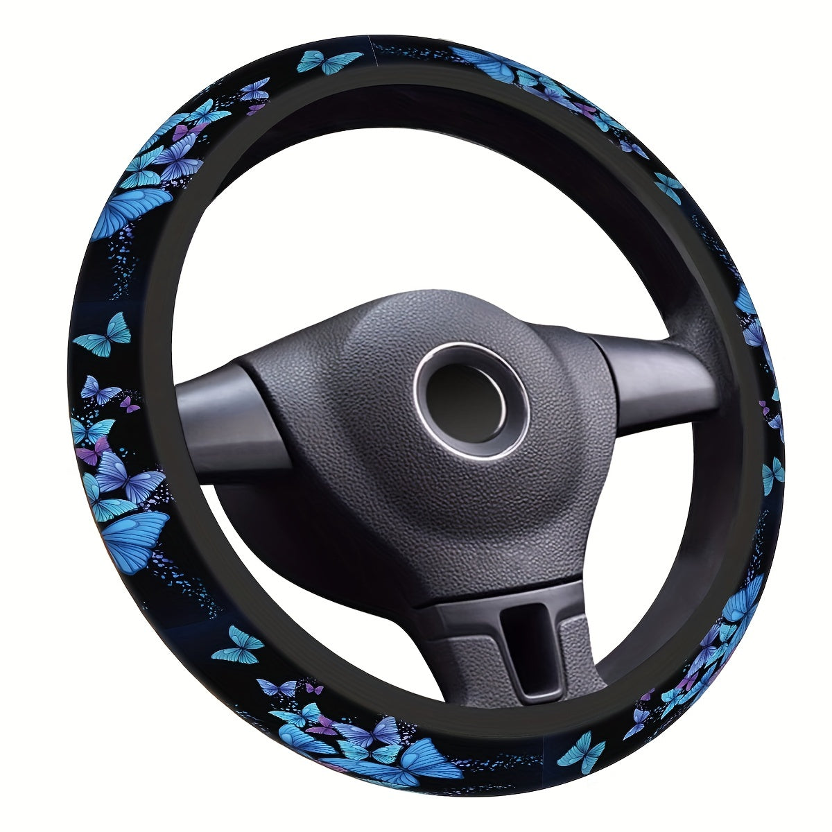 Черная бабочка с принтом, покрытие на руль из полиэстера для автомобилей