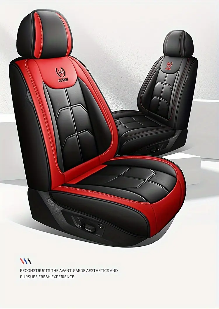 Черные чехлы из искусственной кожи для передних сидений автомобиля с красной прострочкой