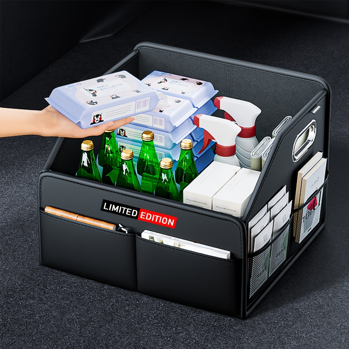 Черный органайзер для багажника автомобиля из искусственной кожи с ручками, складной ящик для хранения