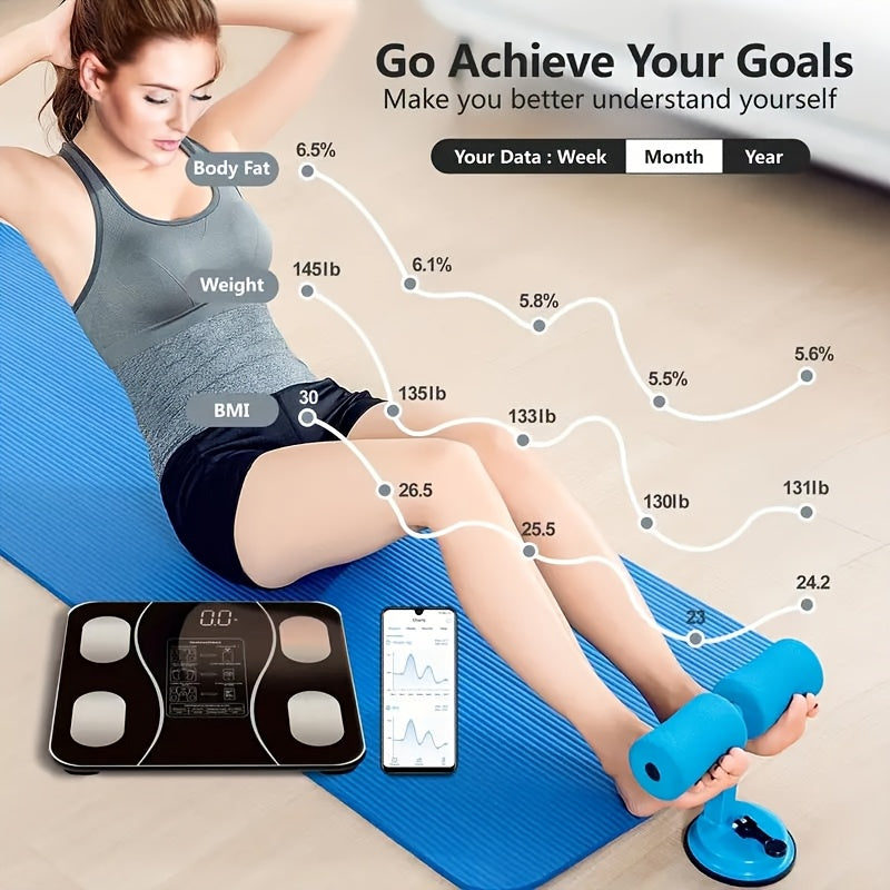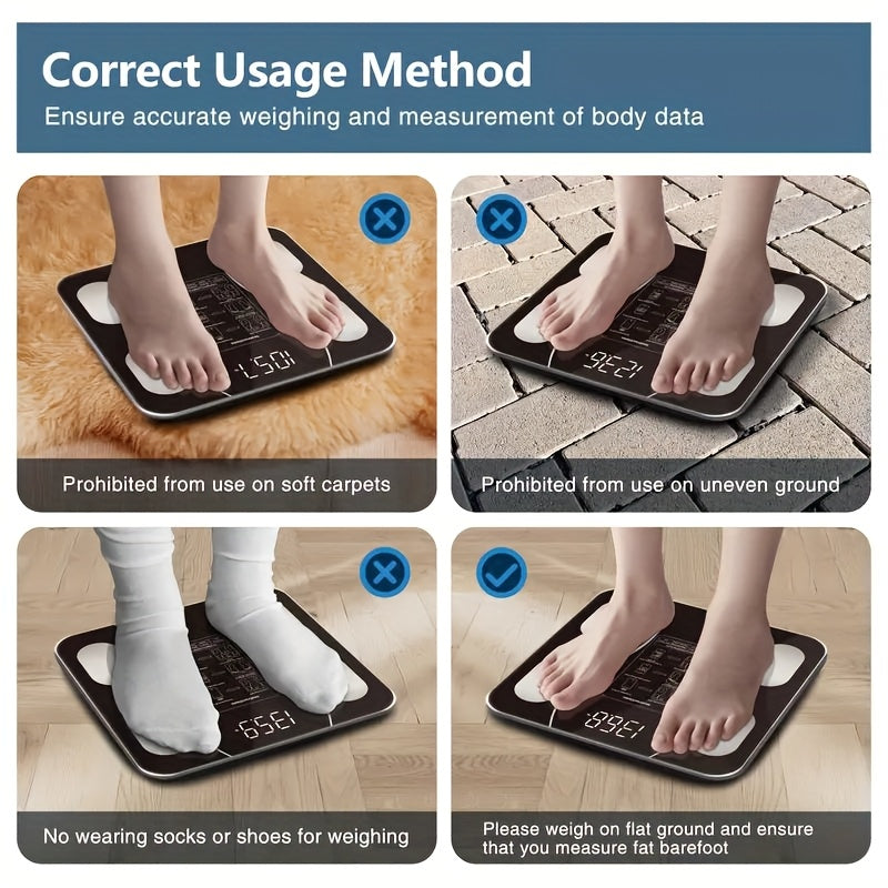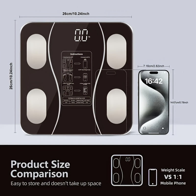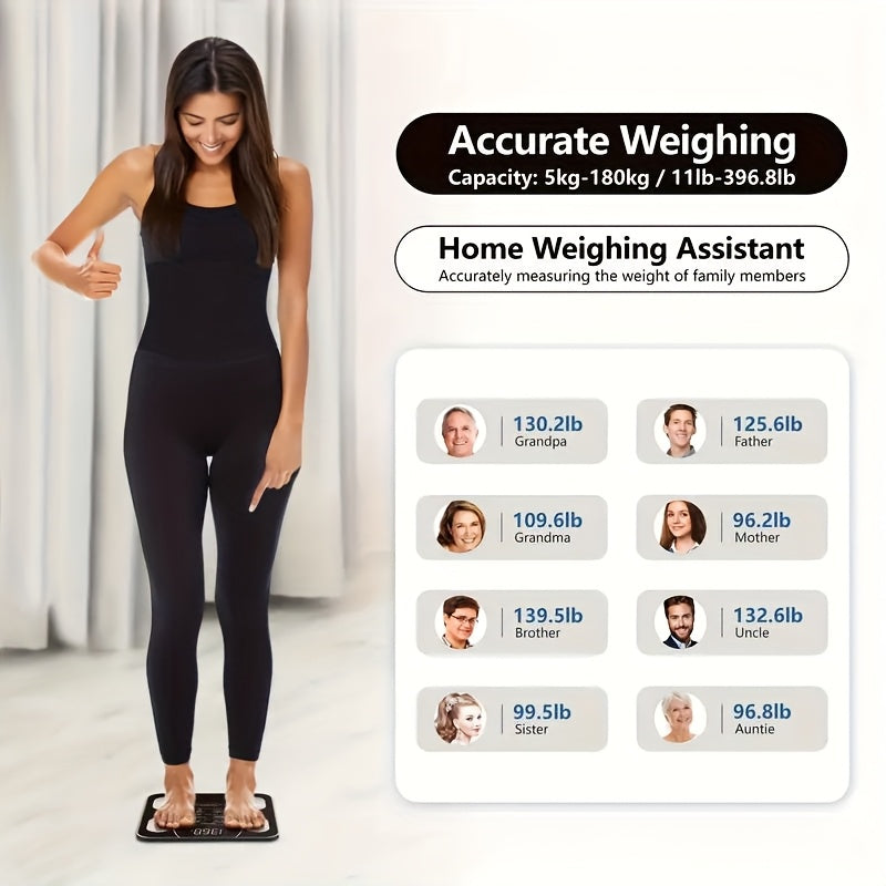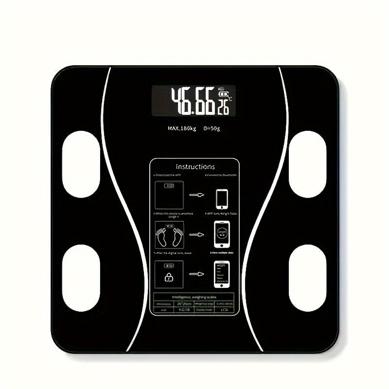 Черные умные напольные весы для ванной комнаты с LED-дисплеем, закаленное стекло, вес до 400 фунтов/180 кг.