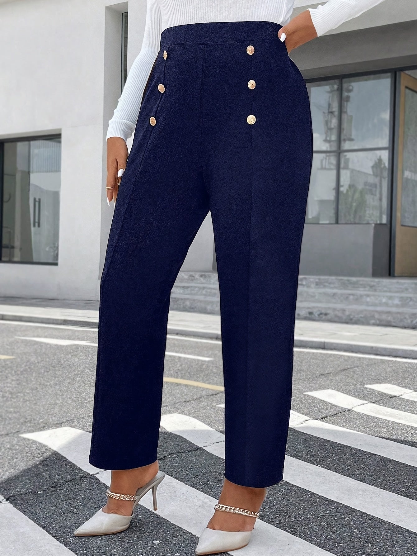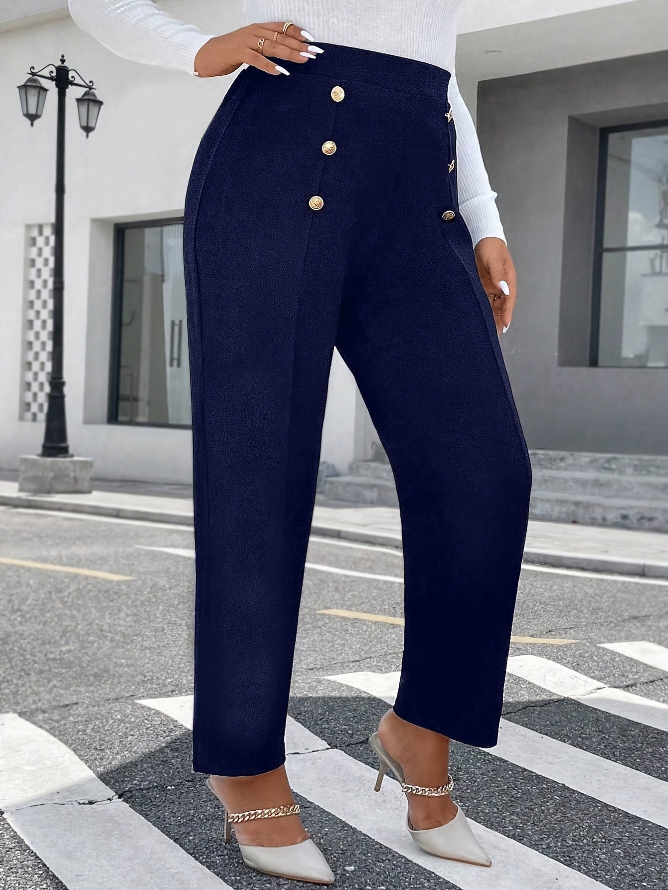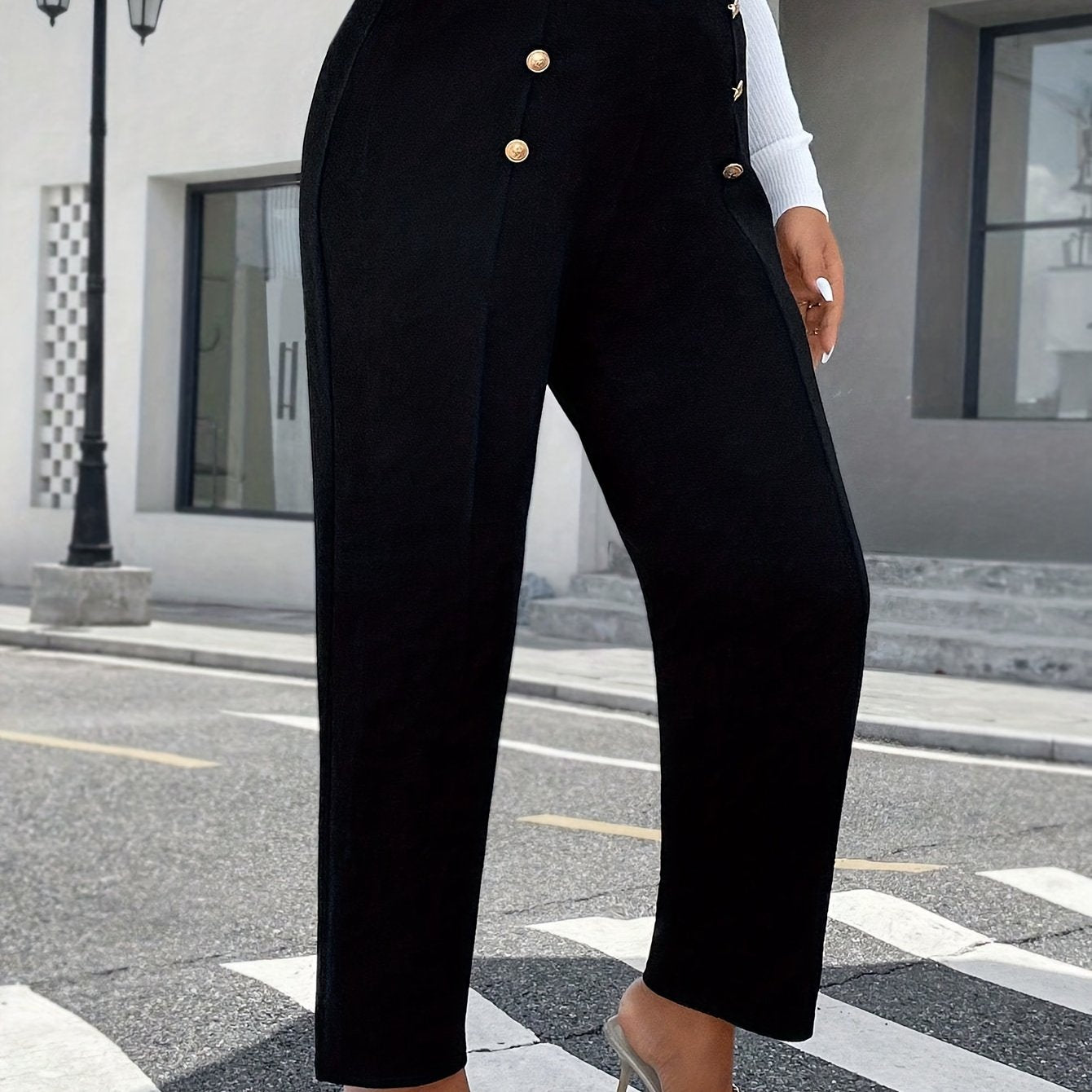Брюки большого размера черные с высокой талией и прямым кроем, с деталями из пуговиц, из полиэстеровой смеси