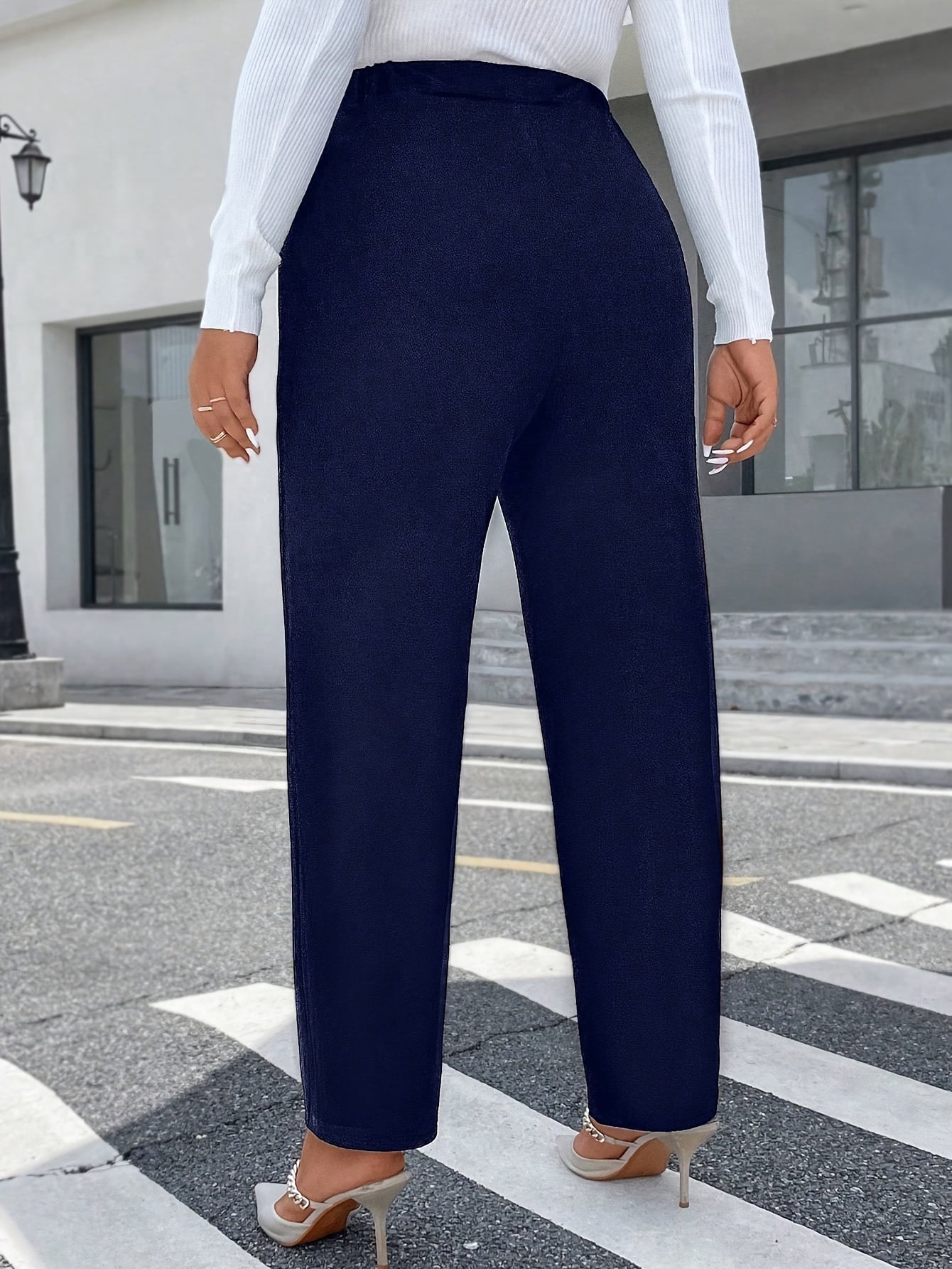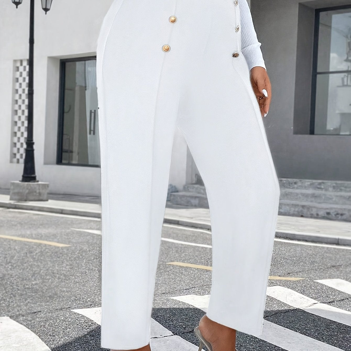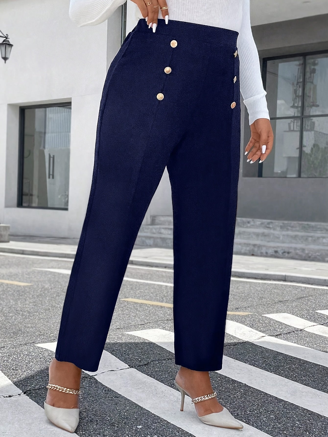 Брюки большого размера черные с высокой талией и прямым кроем, с деталями из пуговиц, из полиэстеровой смеси