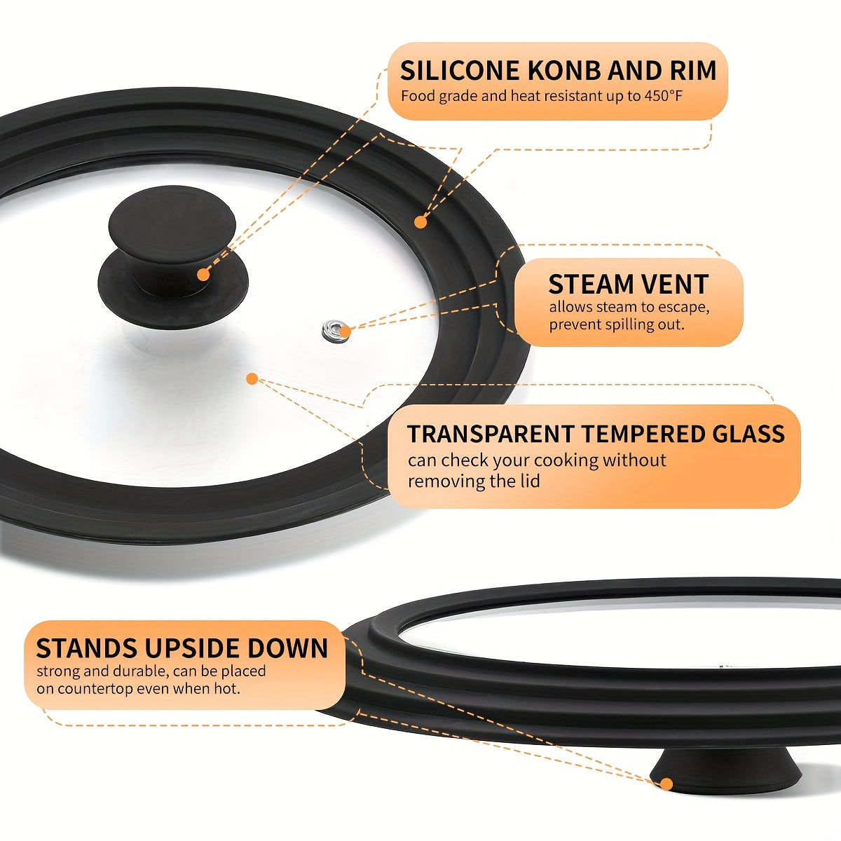 Черные универсальные силиконовые крышки: подходят для посуды, стеклянных крышек на сковородах, кастрюлях, сковородах, чугунных кастрюлях, мультиварках.