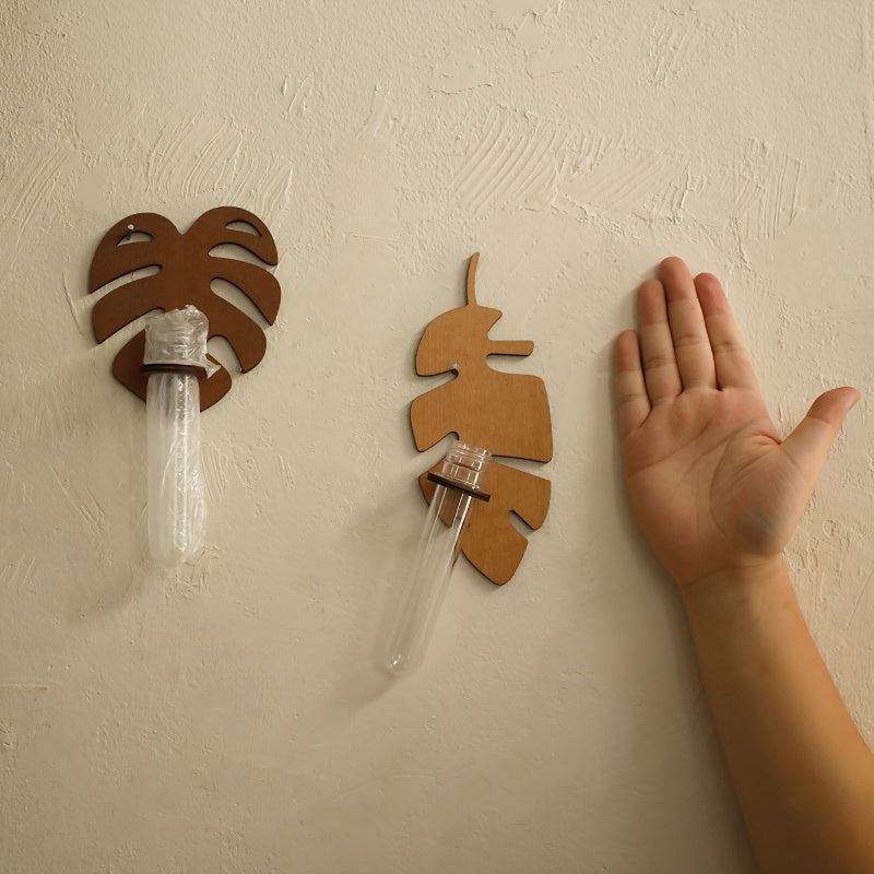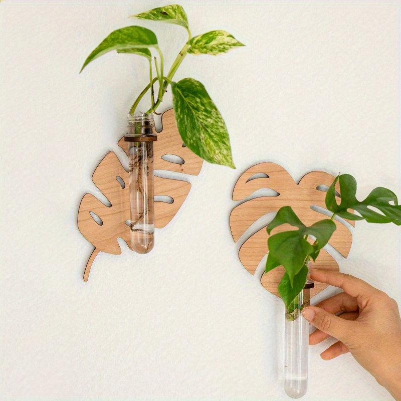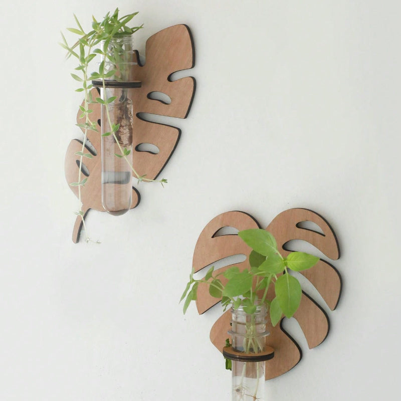 Богемный настенный горшок для растений с деревянным кронштейном и многоярусными пробирками
