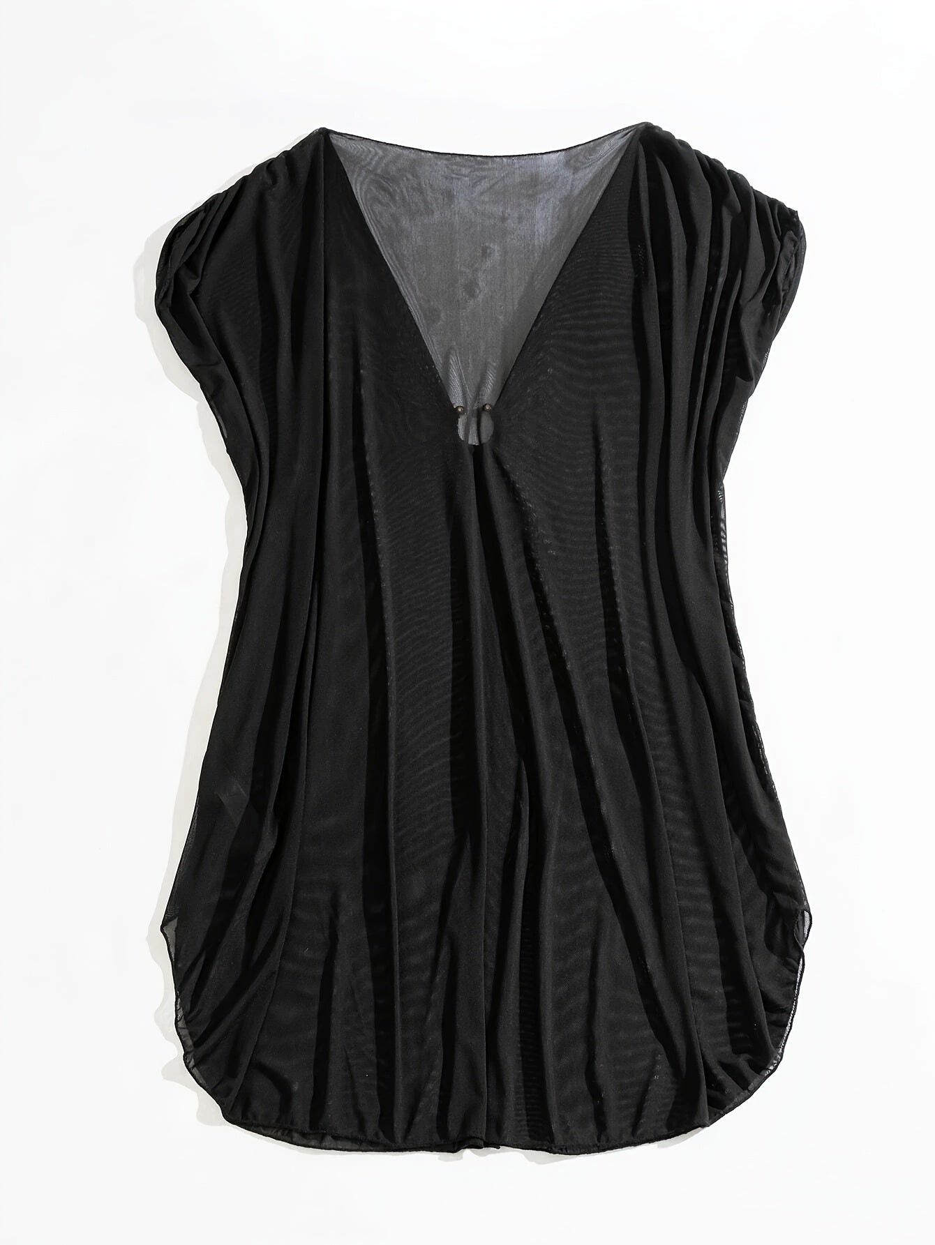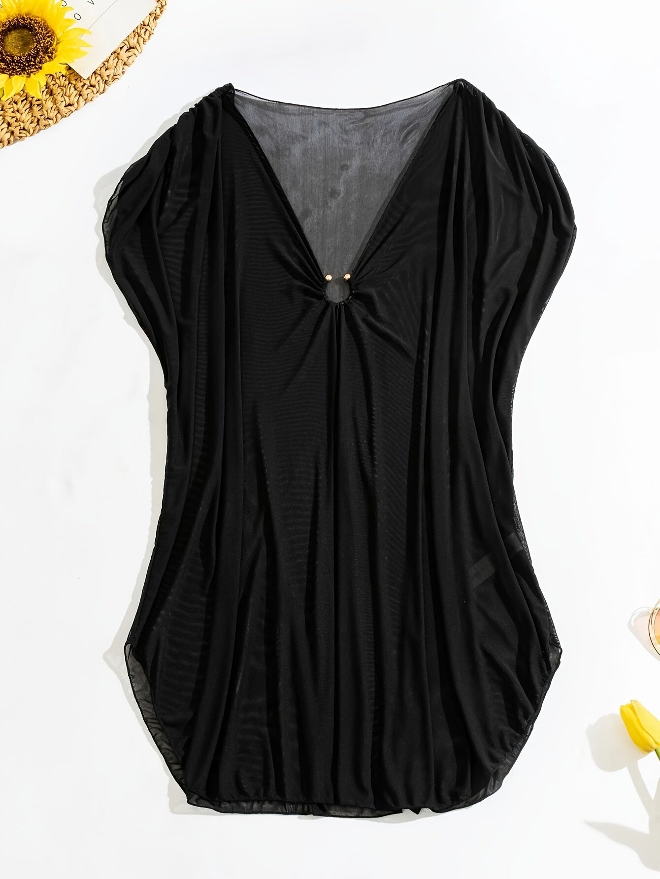 Бохо шик V-образное платье-туника для женщин, полупрозрачное и эластичное пляжное одеяние однотонного цвета, идеально подходит для весны/лета.
