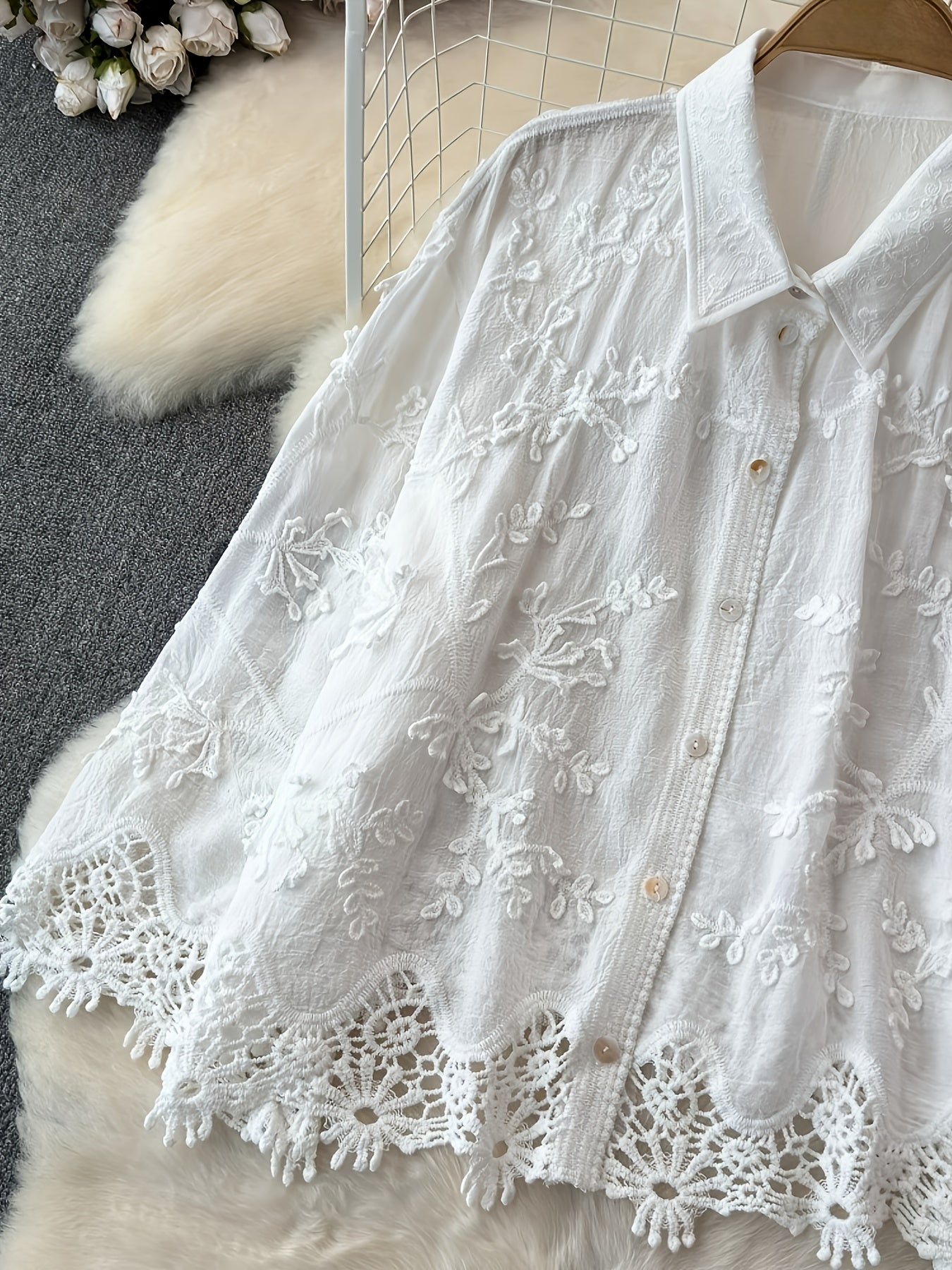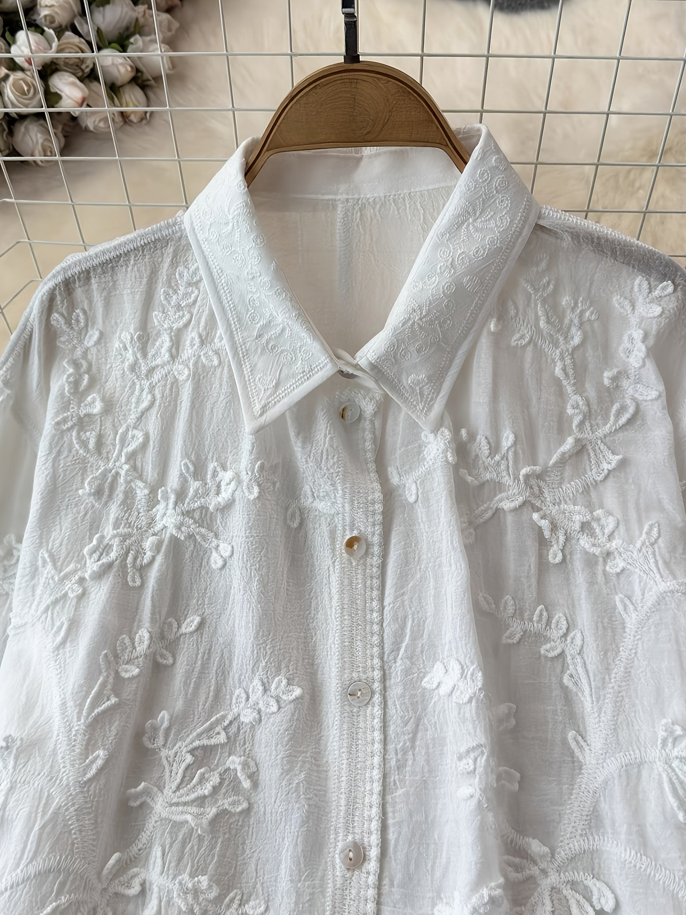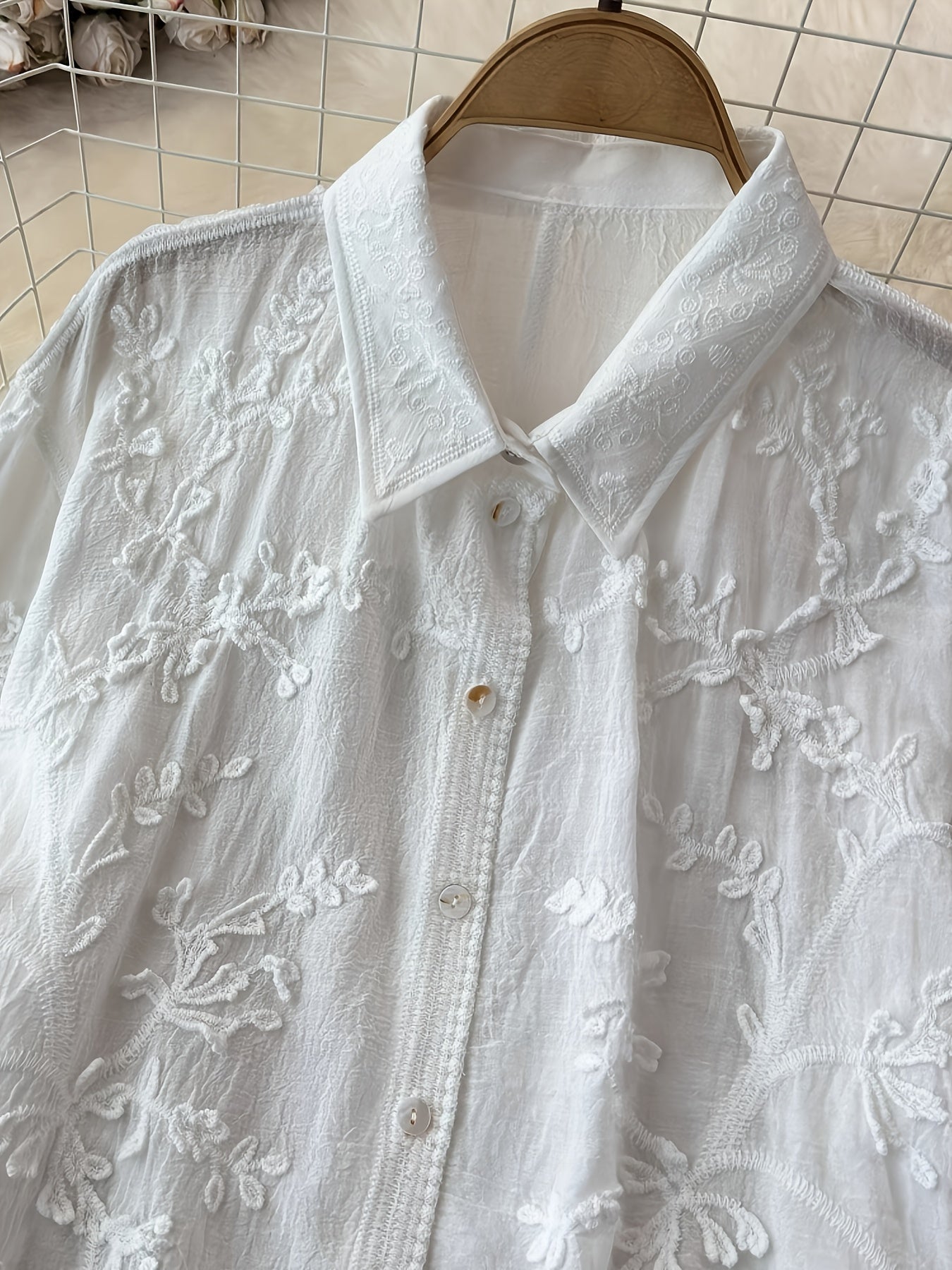 Бохо вышитая хлопковая рубашка с геометрическим узором и воротником для подростков. Изготовлена из трикотажной ткани, не тянется, подходит для всех сезонов. Обычный крой, 100% хлопок.