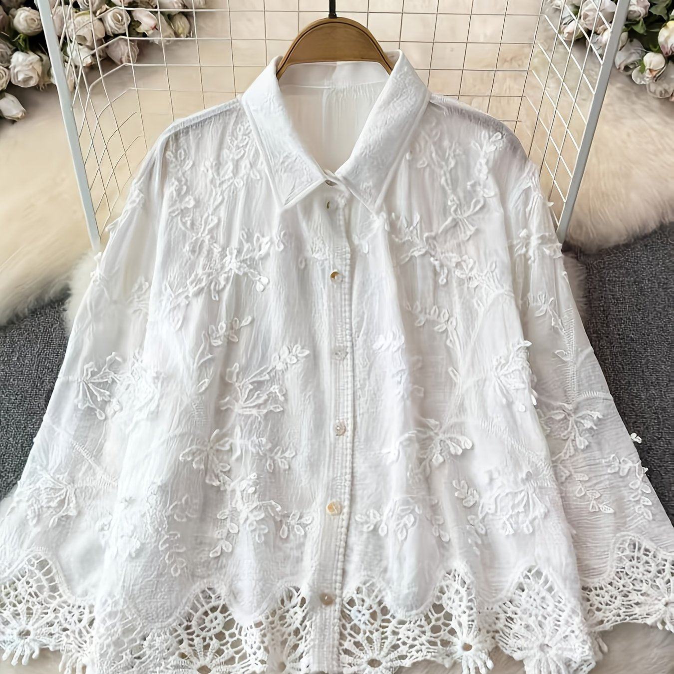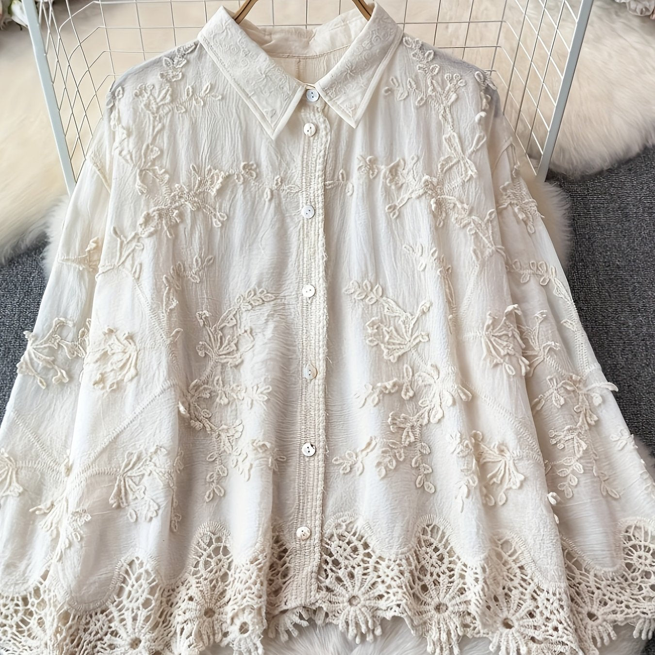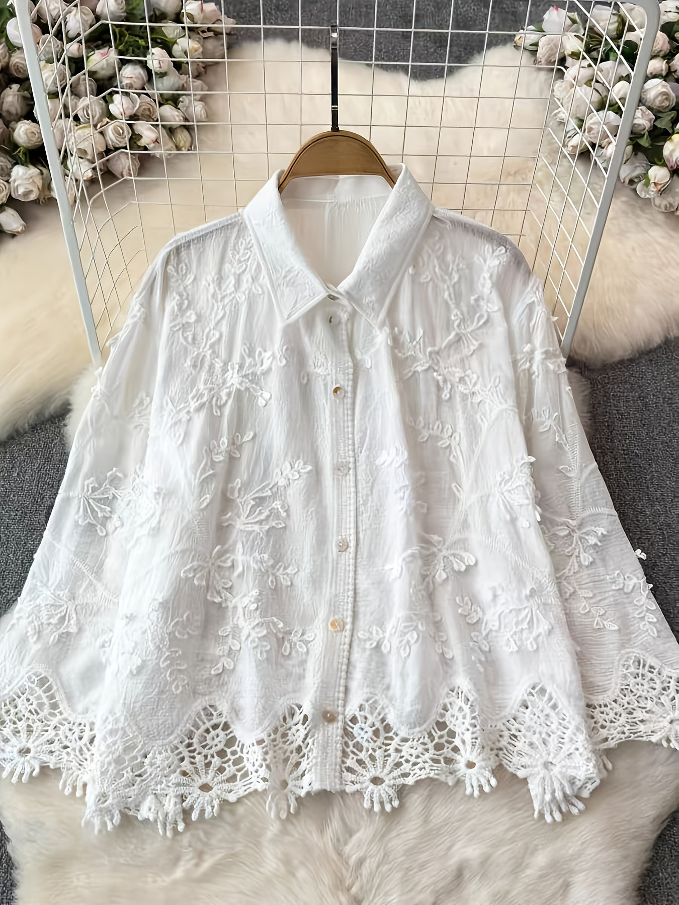 Бохо вышитая хлопковая рубашка с геометрическим узором и воротником для подростков. Изготовлена из трикотажной ткани, не тянется, подходит для всех сезонов. Обычный крой, 100% хлопок.