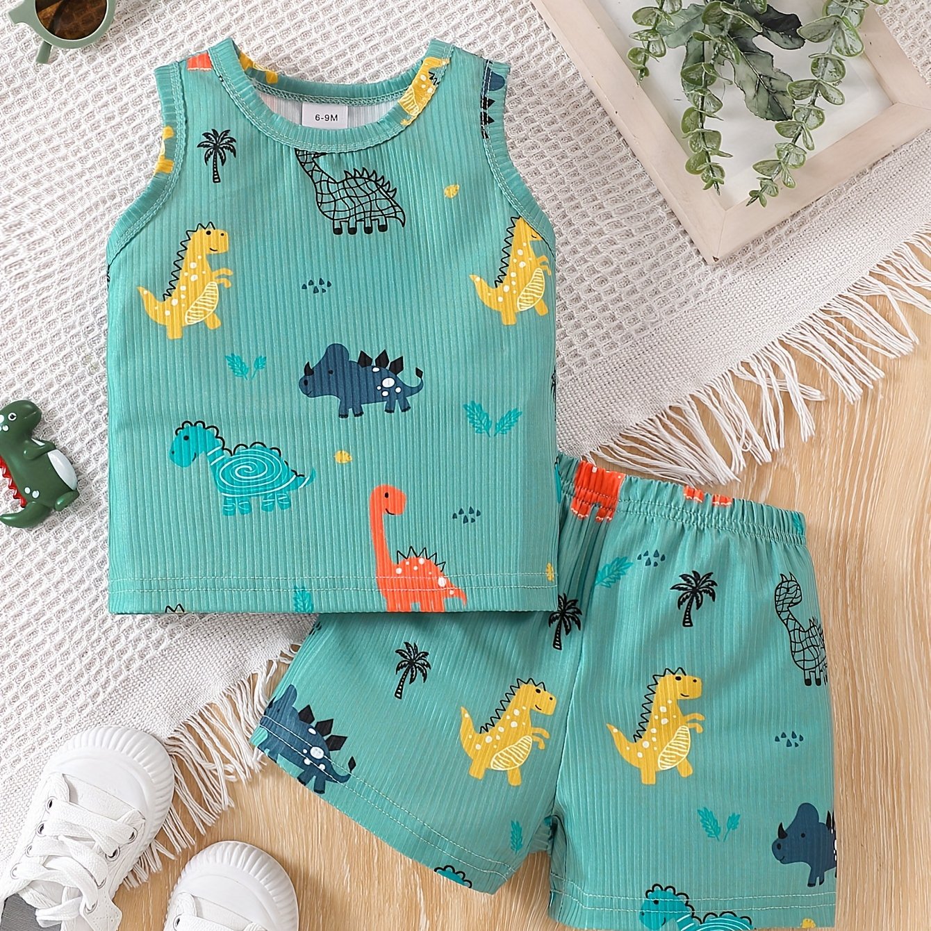 Детский летний набор безрукавки и шорт с принтом динозавра для мальчиков