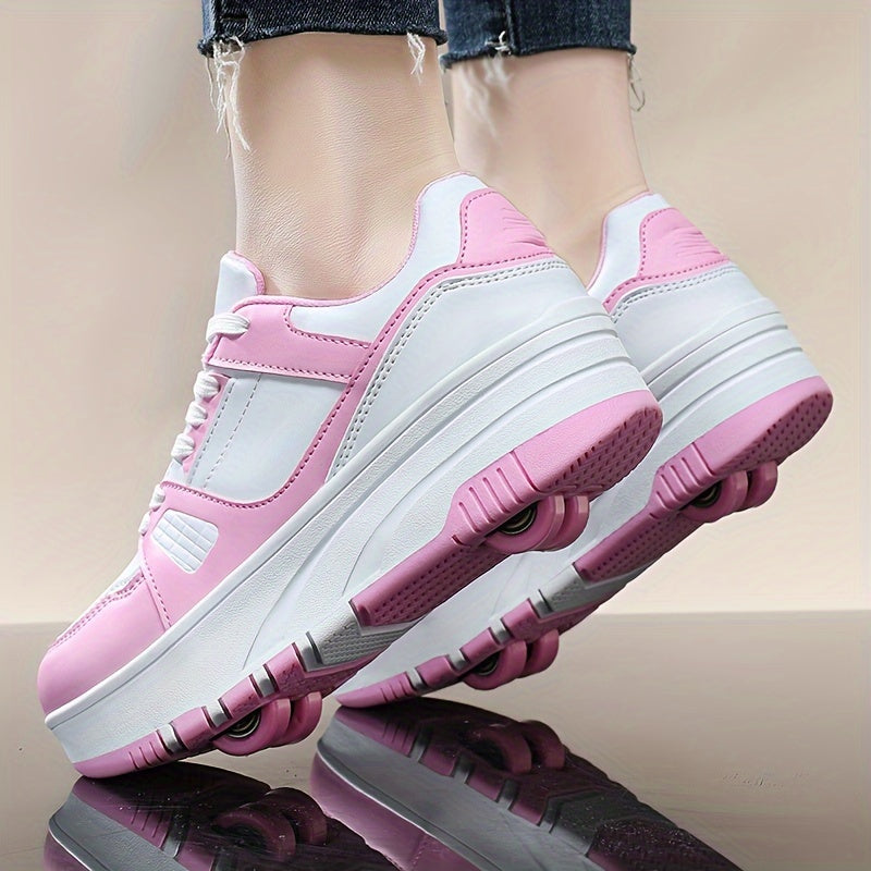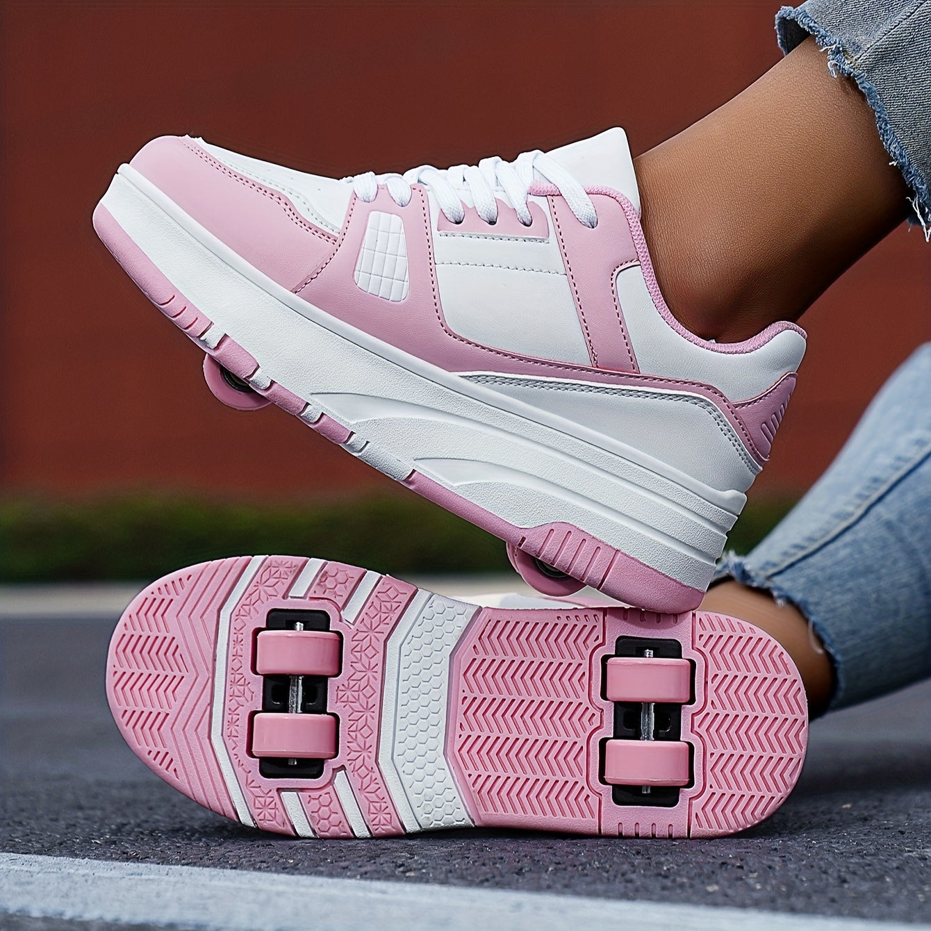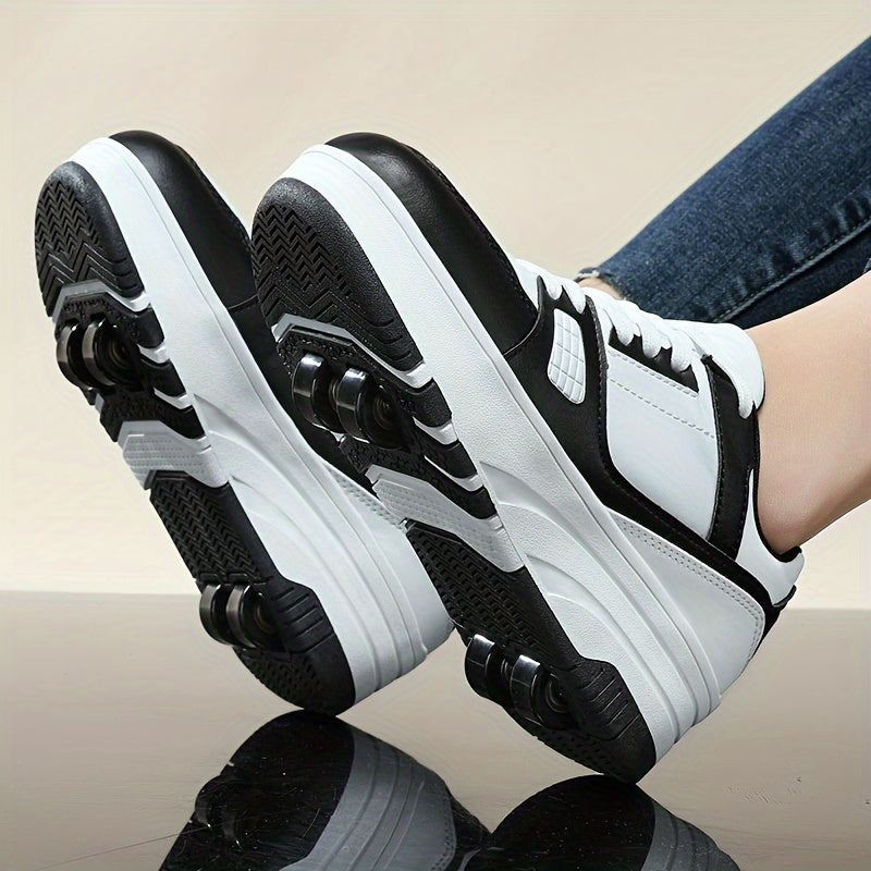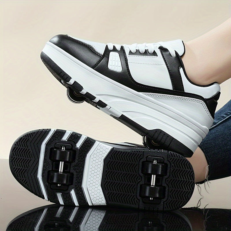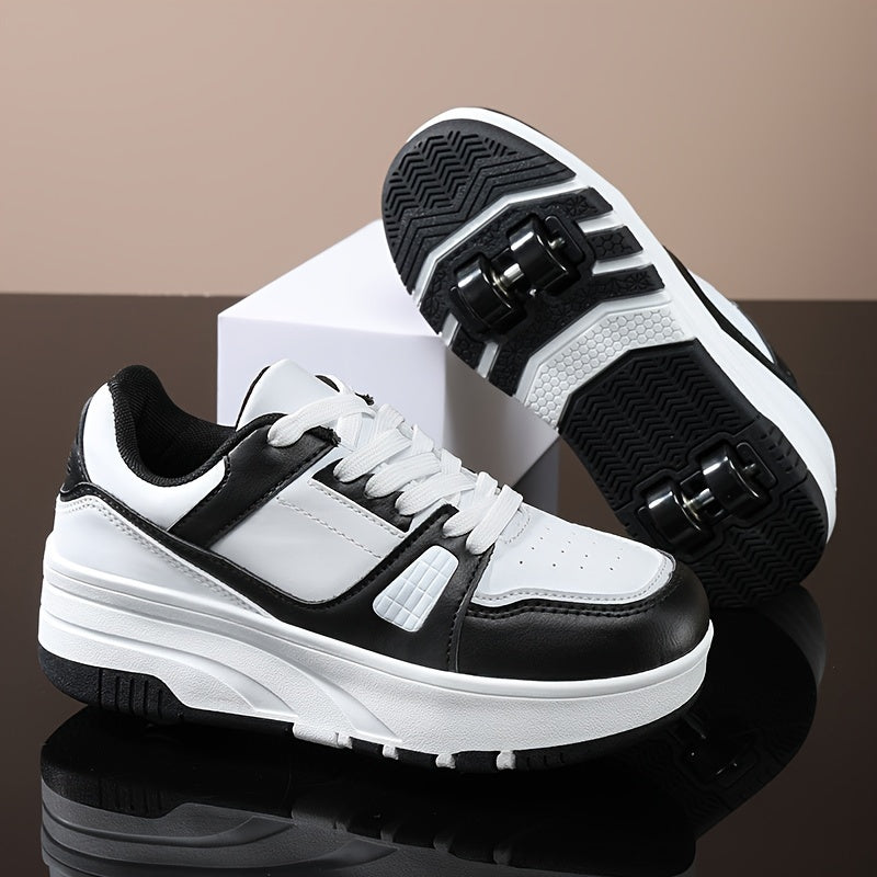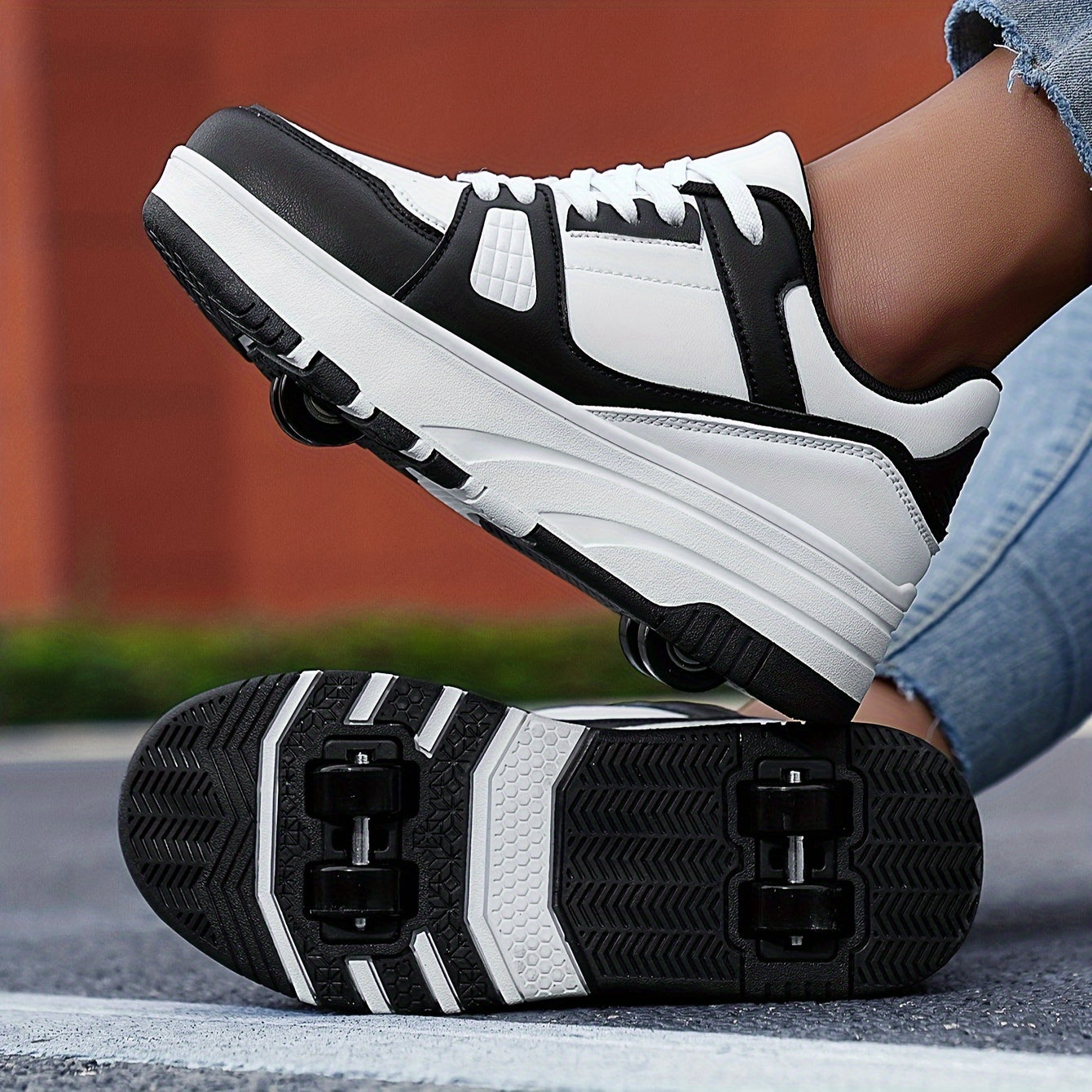 Детские роликовые коньки для мальчиков с нескользящими двойными колесами, шнуровкой и ремешками на пряжке, черные и белые