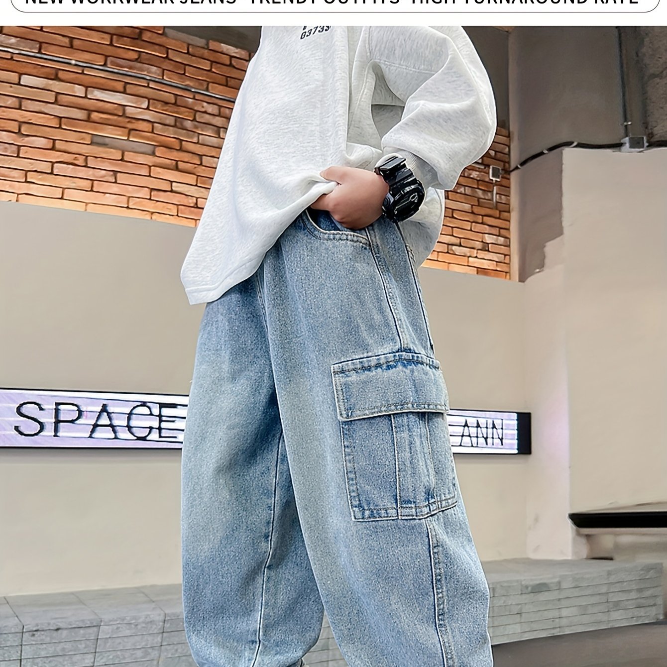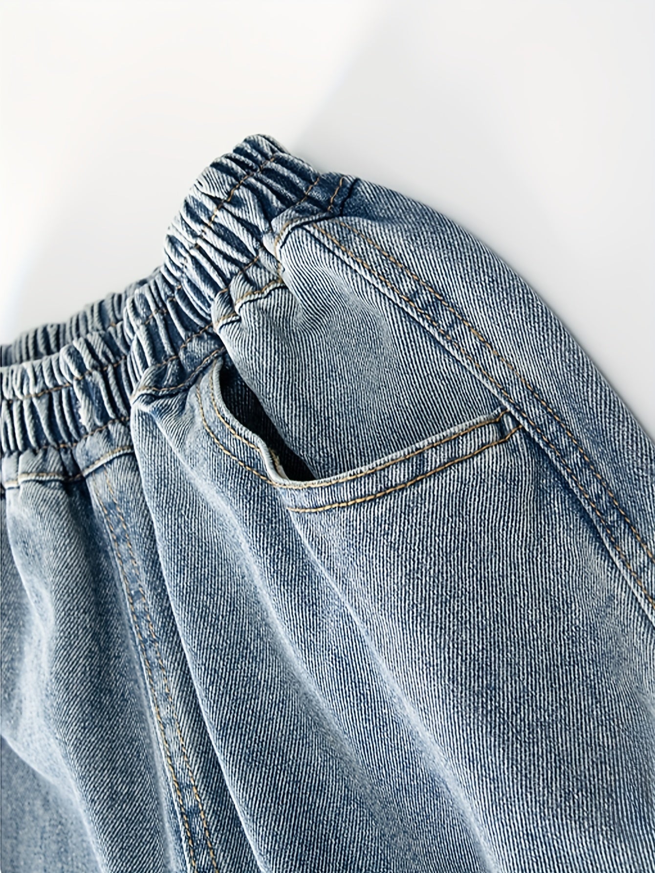 Мальчики Классические джинсы из денима с эластичным поясом, карманами, повседневные для всех сезонов