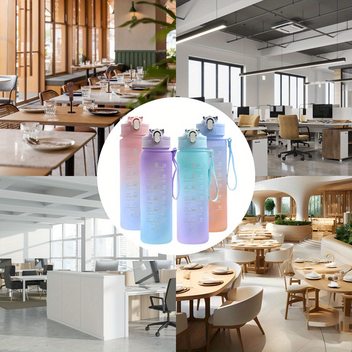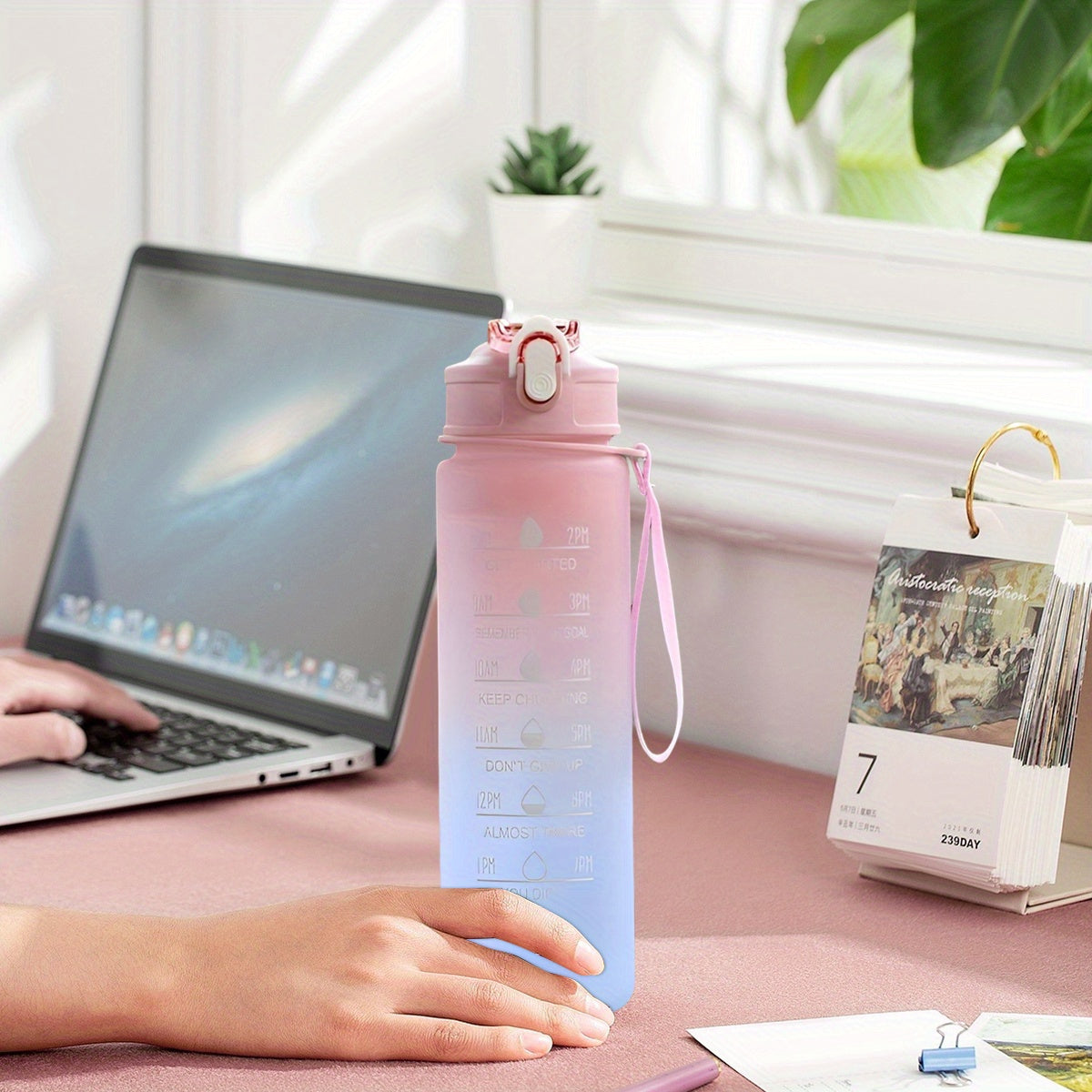Спортивная бутылка для воды без BPA с временной меткой, соломинкой, герметичным дизайном, вдохновляющими цитатами, подходит для различных видов деятельности.