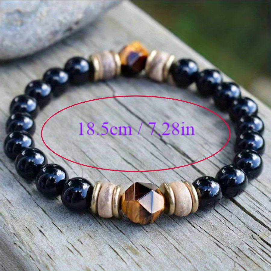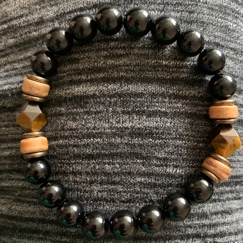 Мужской браслет защиты из тигрового глаза и черного турмалина
