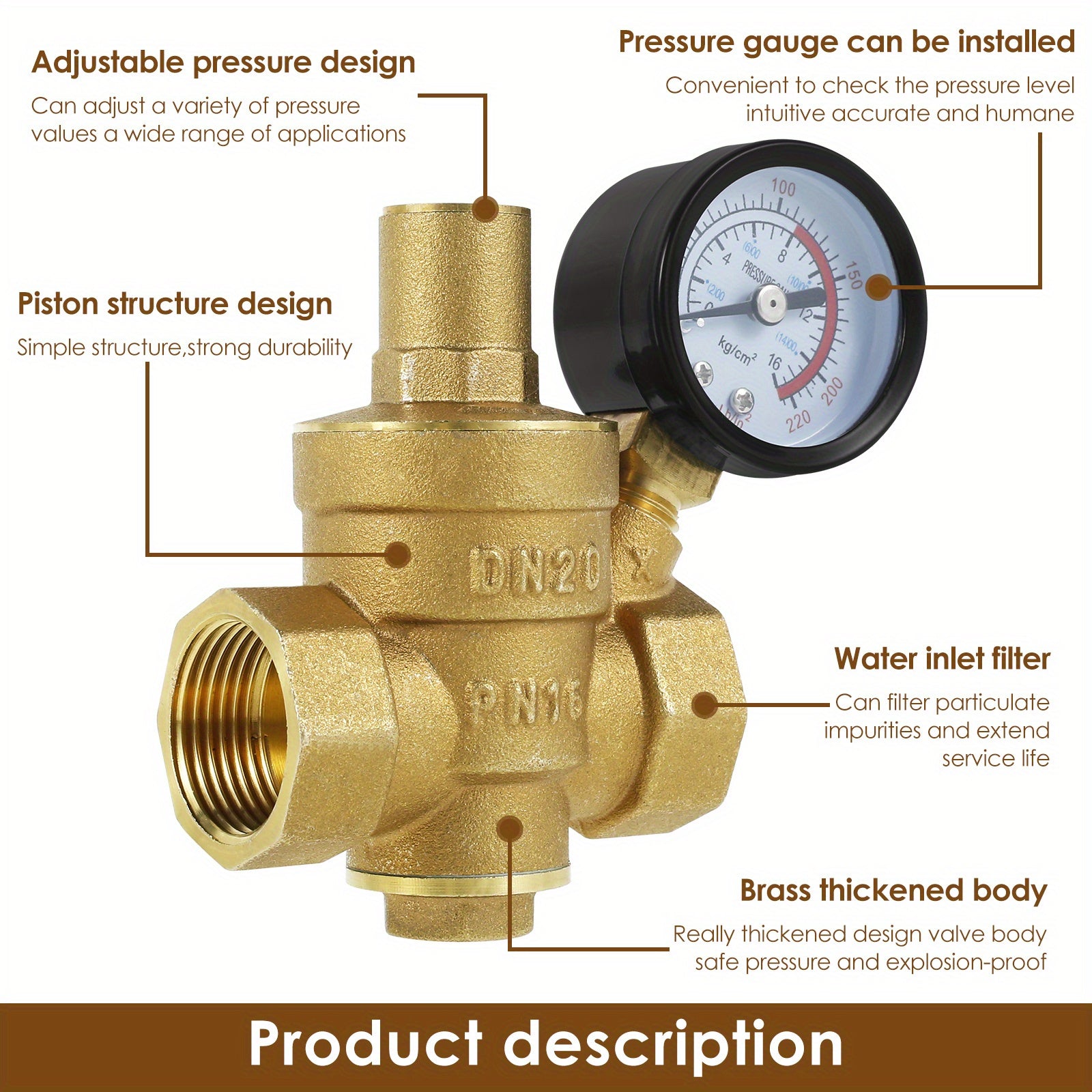 Латунный регулятор давления воды с манометром для водяных и масляных систем, регулируемый, 3/4 дюйма DN20, 1/2 дюйма DN15