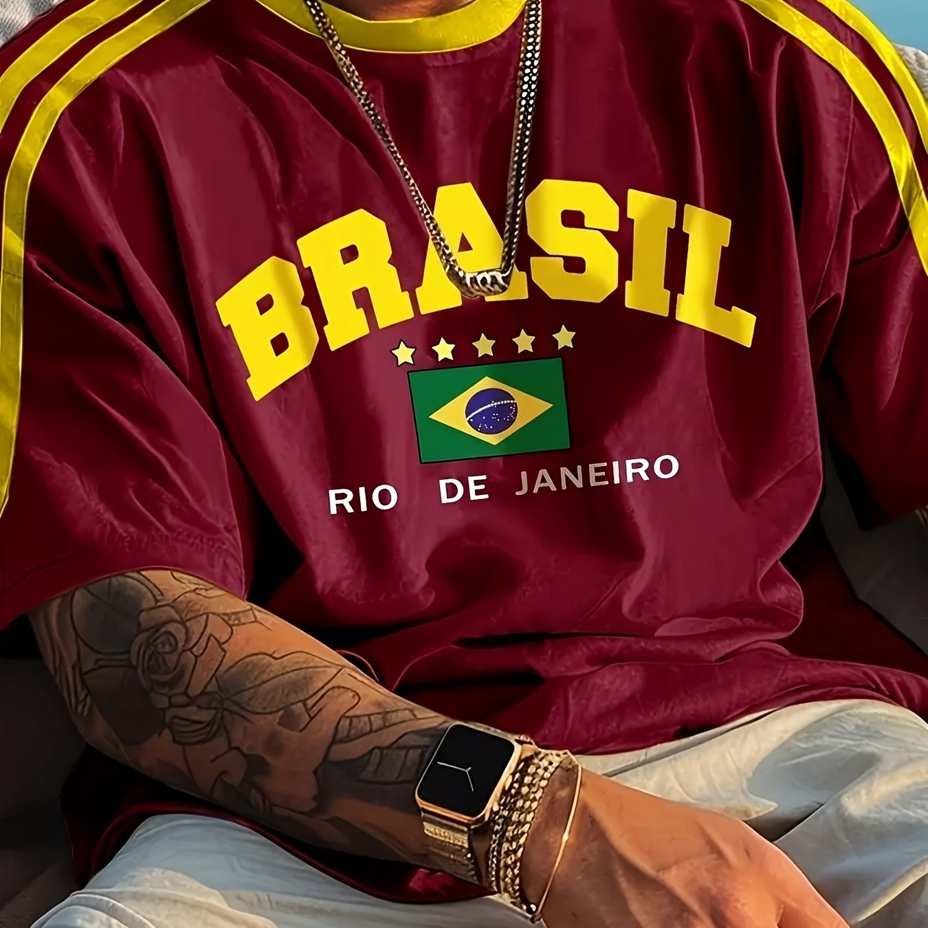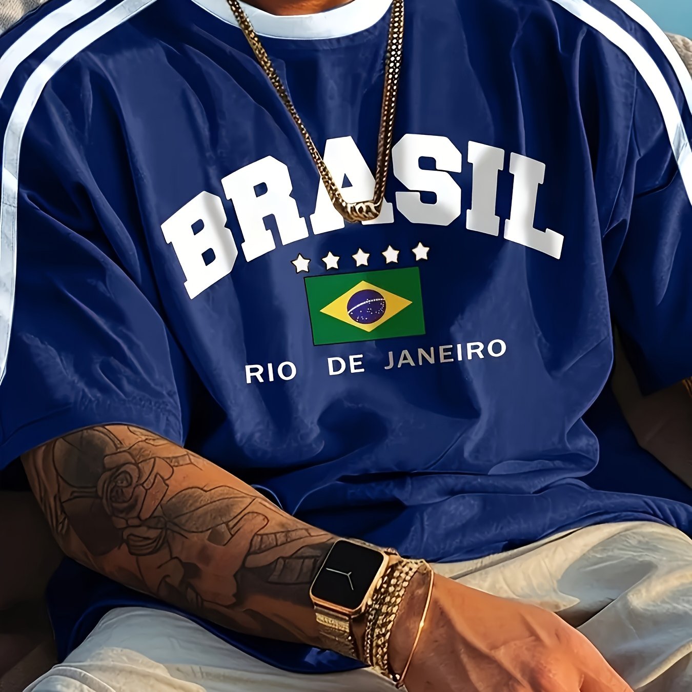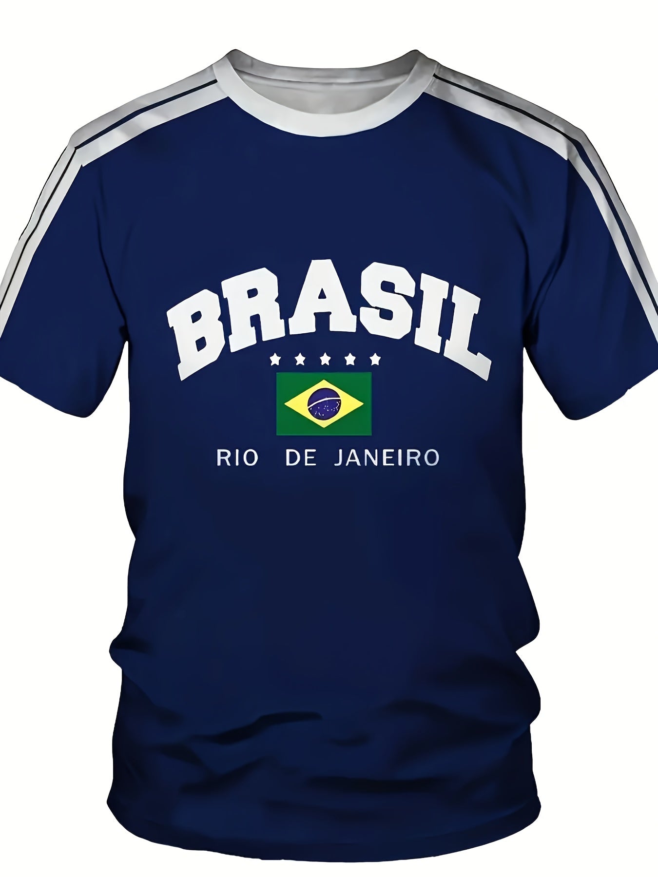 Мужская повседневная футболка с коротким рукавом из полиэстера в бразильском стиле, большой размер, летняя одежда для отдыха на открытом воздухе