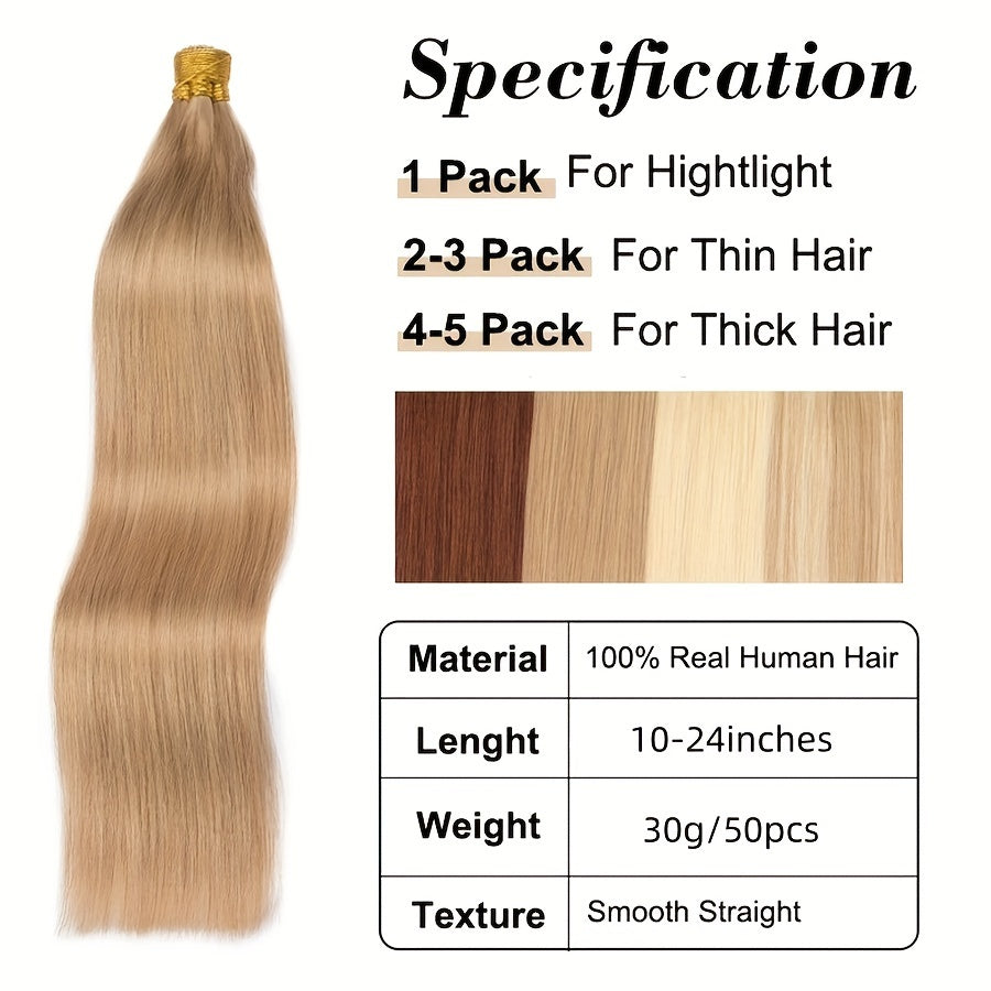 Натуральные волосы для наращивания прямые I Tip 50 шт. Цвет натуральный 40,6-66 см
