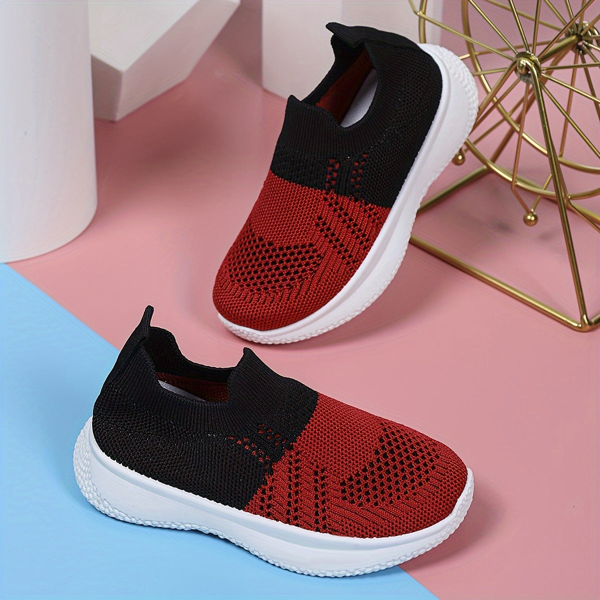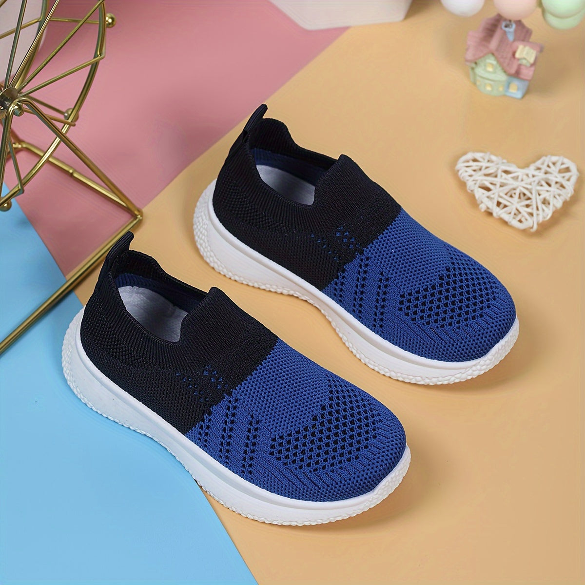 Дышащие трикотажные кроссовки для мальчиков с геометрическим узором, верх из полого материала, низкий ход, повседневная обувь для возрастных групп до 14 лет