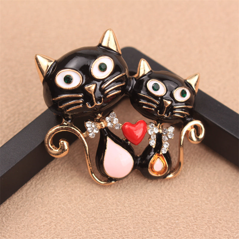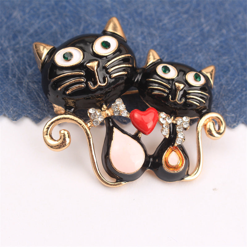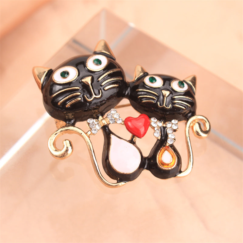 Брошь с узором в виде мультяшного кота и инкрустацией стразами, идеально подходит для женской одежды, лацканная булавка для платьев, пальто и свитеров, стильный аксессуар для корсажа