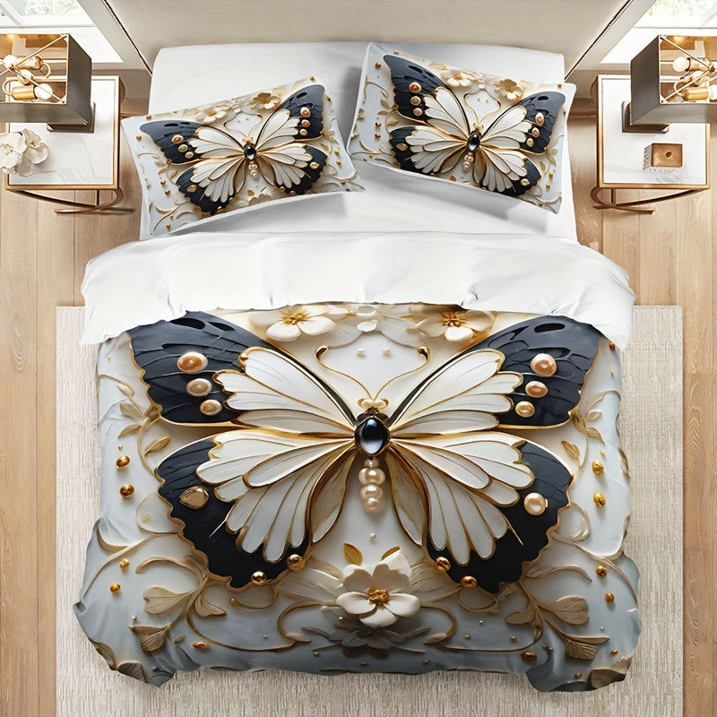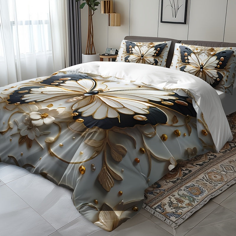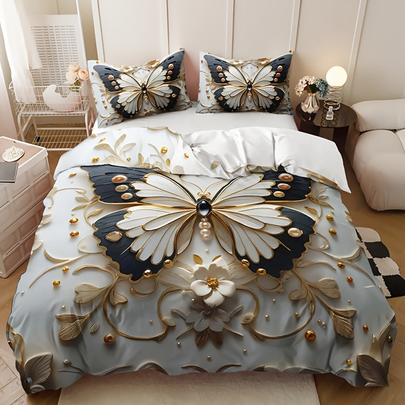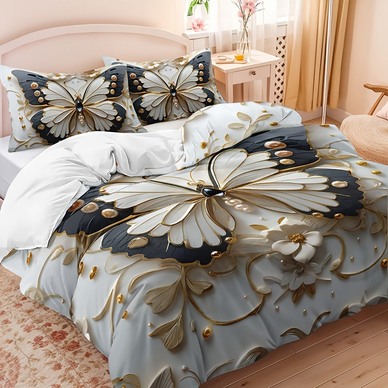 Комплект постельного белья с покрывалом в виде бабочек с животным принтом, темой насекомых и дышащим полиэстером. Включает 1 покрывало и 2 наволочки. Для всех сезонов и машинной стирки. Цифровая печать.