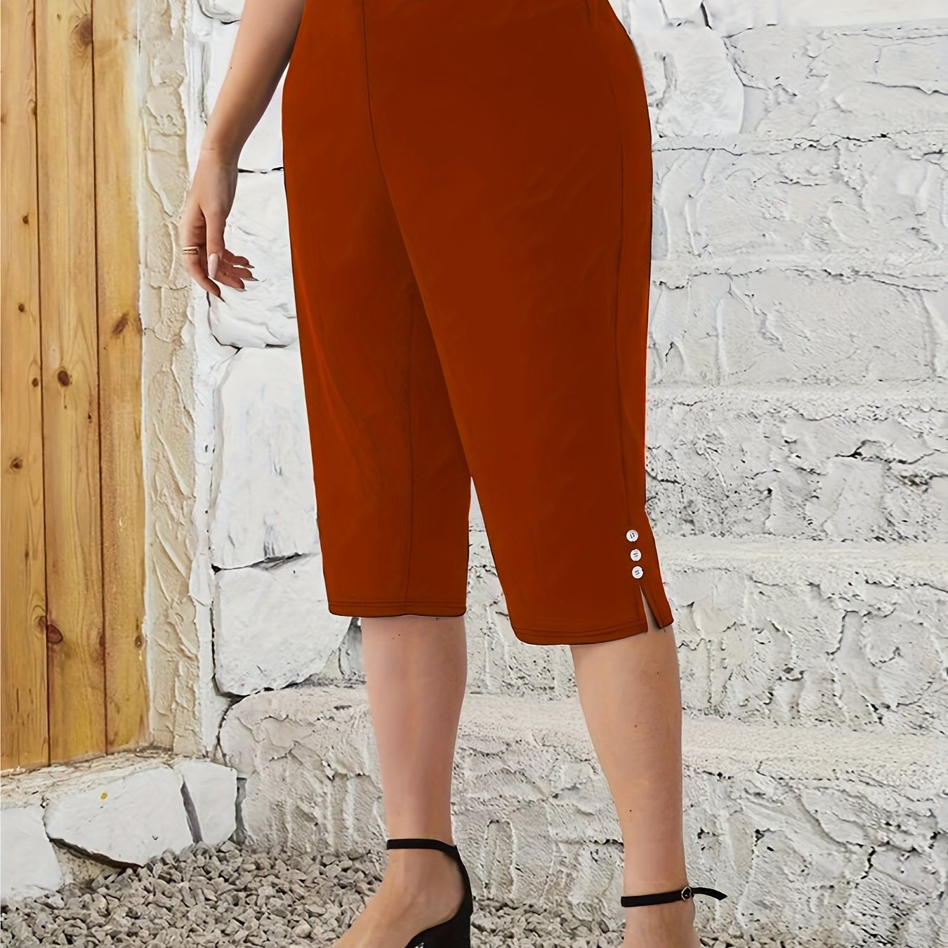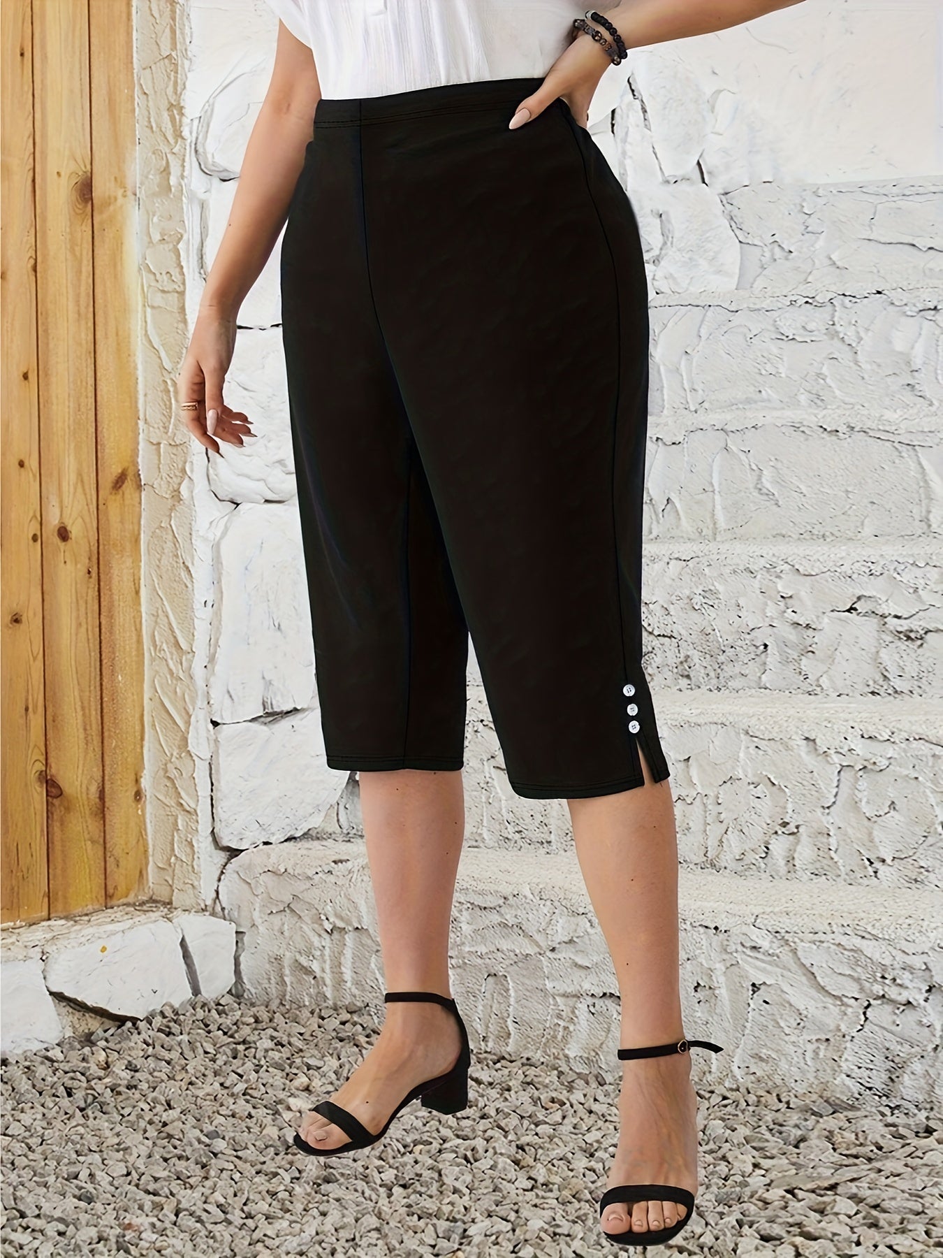 Капри с пуговицами для полных женщин с эластичным поясом и разрезом для весны и лета