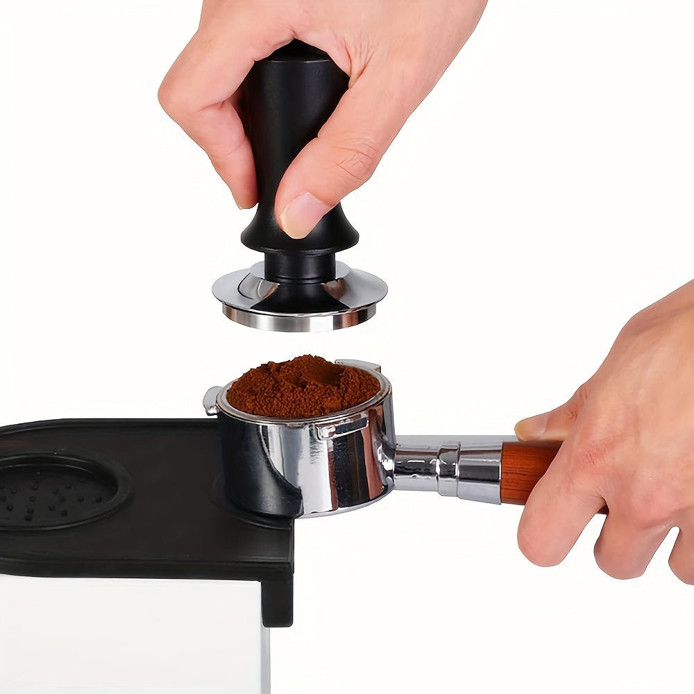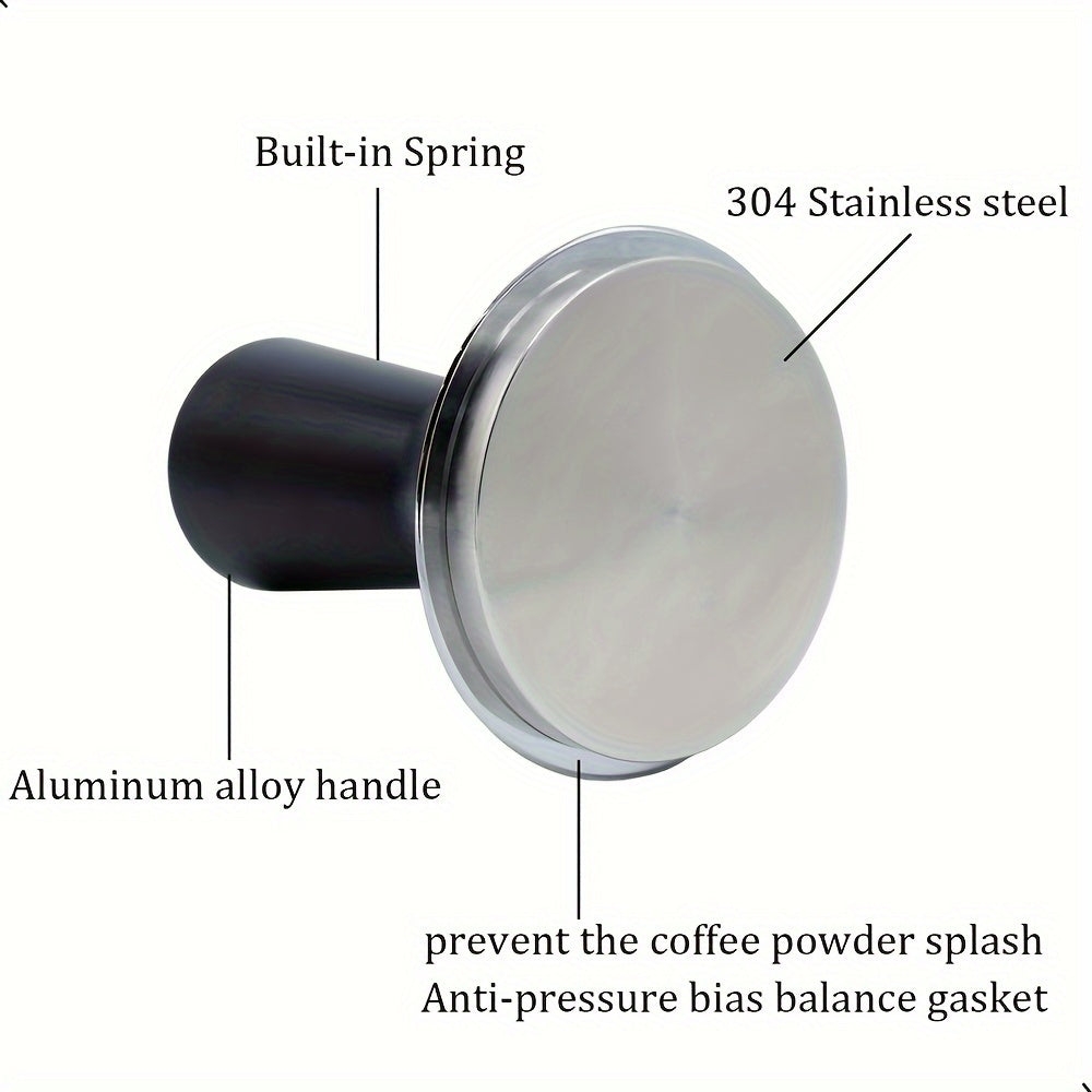 Калиброванный темпера для эспрессо с пружинной алюминиевой ручкой и плоским основанием из нержавеющей стали - 1 шт. размером 51/53/58 мм, в комплект входит кофейная подставка