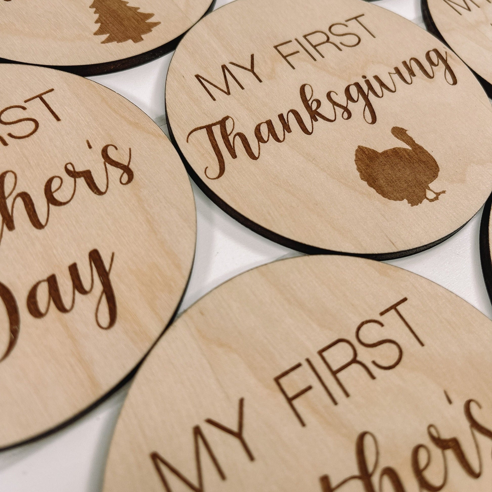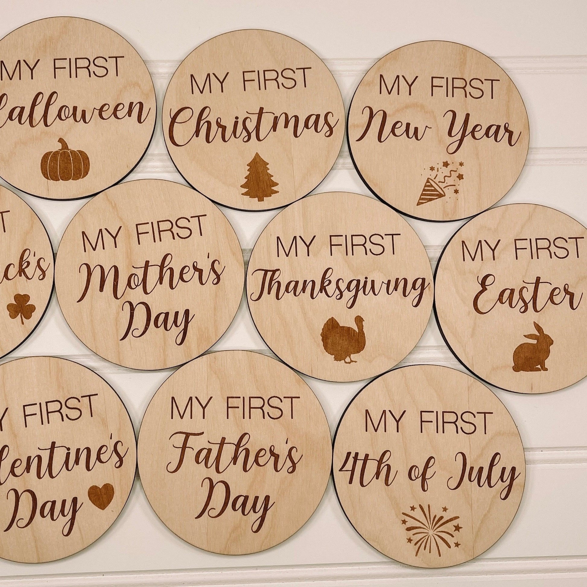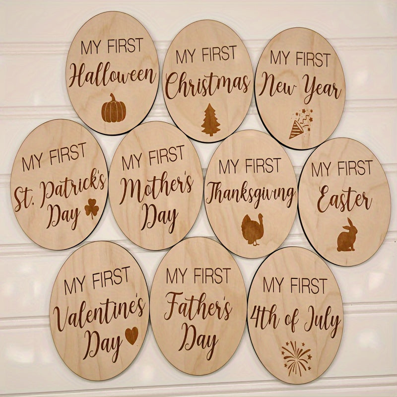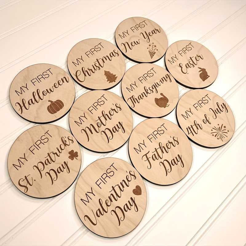 Запечатлейте рост вашего малыша с помощью 10 деревянных карточек для ежемесячных вех, в комплекте с легким деревянным фотодиском для Хэллоуина, Дня благодарения и рождественских подарков.