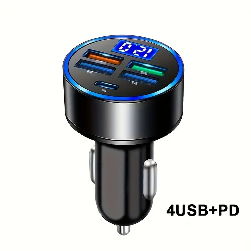 Автомобильное зарядное устройство с 5 портами, цифровым дисплеем, быстрой зарядкой, адаптер для нескольких устройств