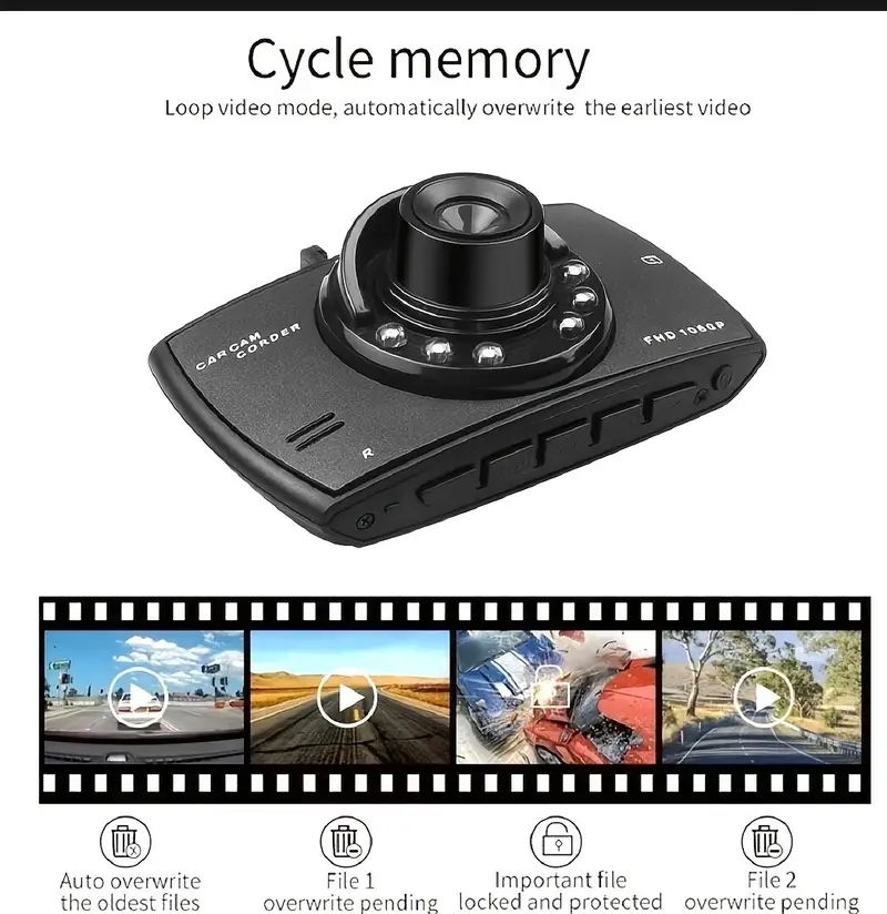 Автомобильный видеорегистратор 1080P с циклической записью, обнаружением столкновений, высокое разрешение
