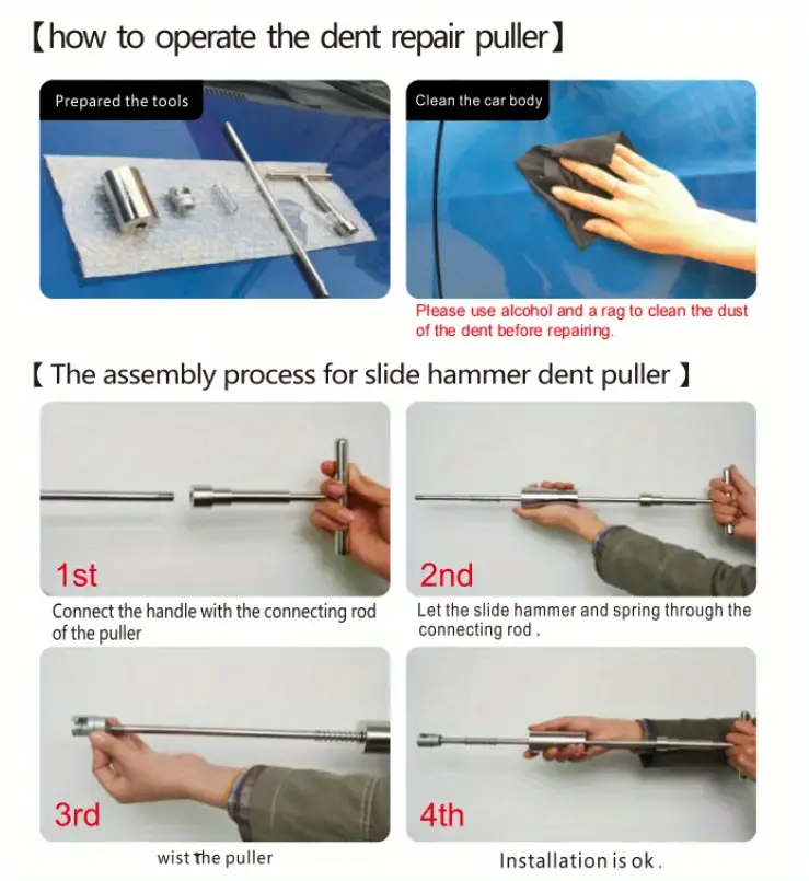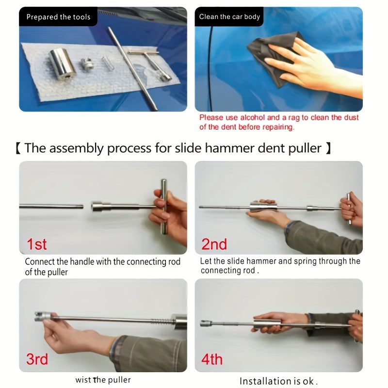 Набор для ремонта вмятин на автомобиле, металлический T-образный захват, пластиковые клеевые вкладки, повреждения кузова