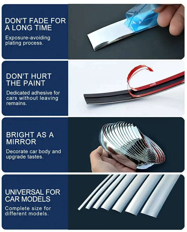 Хромированная внешняя часть автомобиля, защитная полоска на корпусе, бампер, отделка двери, 3 м / 118 дюймов, серебристый защитный слой