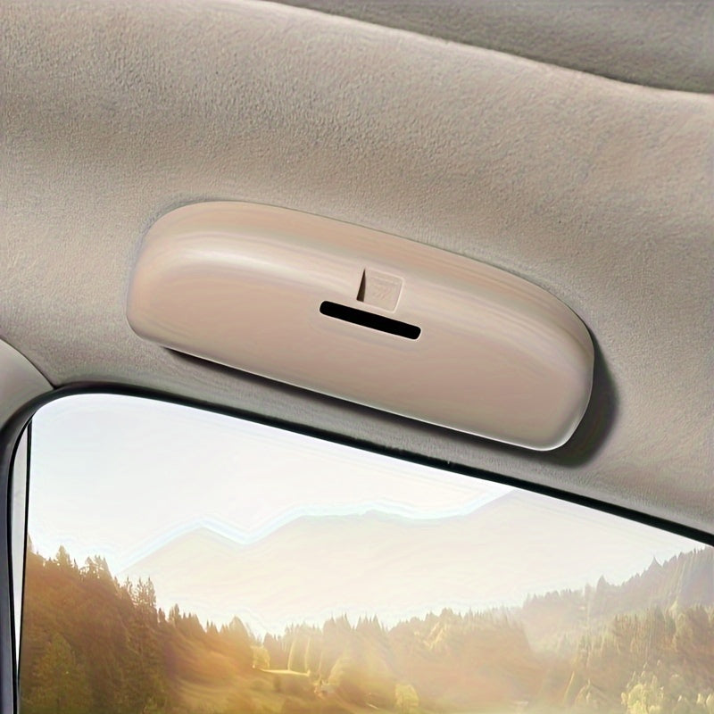 Чехол для очков в салоне автомобиля без оригинальной ручки, модифицированный для легкой установки без повреждений.