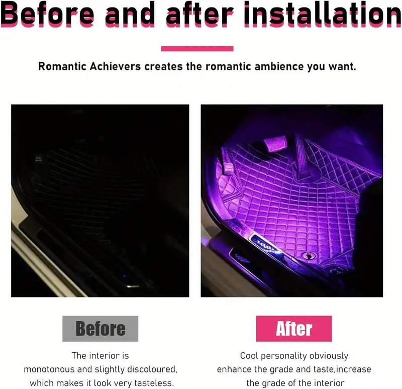 Автомобильная внутренняя RGB LED-подсветка, розовый неоновый атмосферный свет в ночи под приборной панелью
