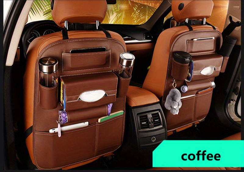 Органайзер для спинки автомобильного сиденья из искусственной кожи коричневого цвета с множеством карманов для хранения