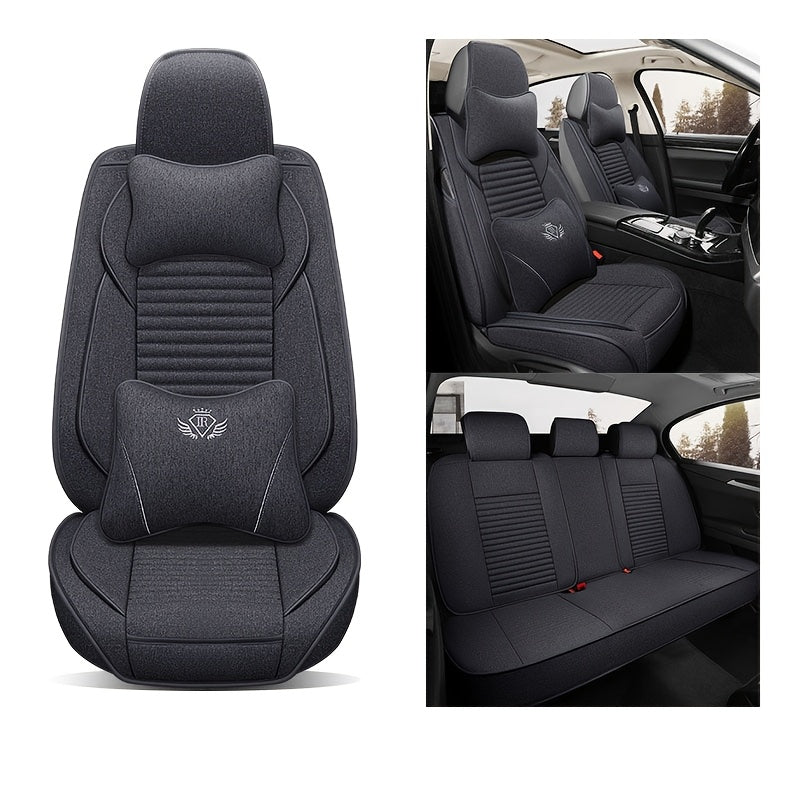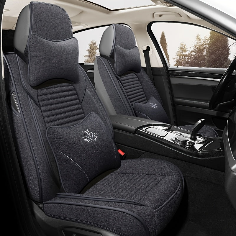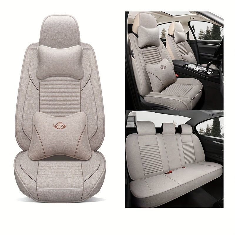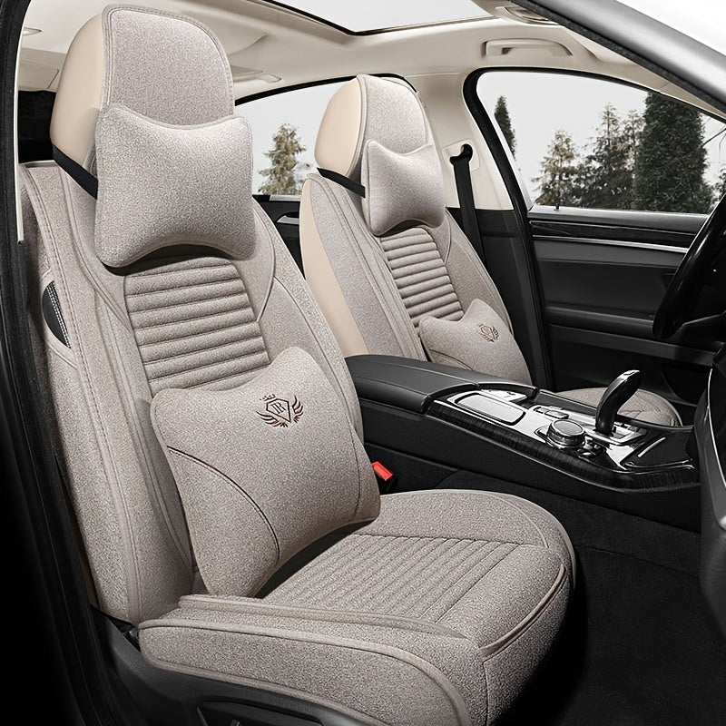 Чехлы для автомобильных сидений из льна, дышащие, всесезонные, универсальные, для пяти мест
