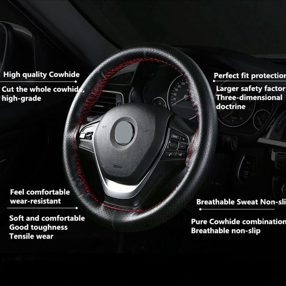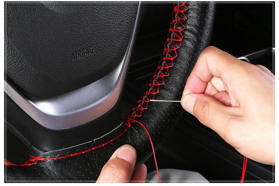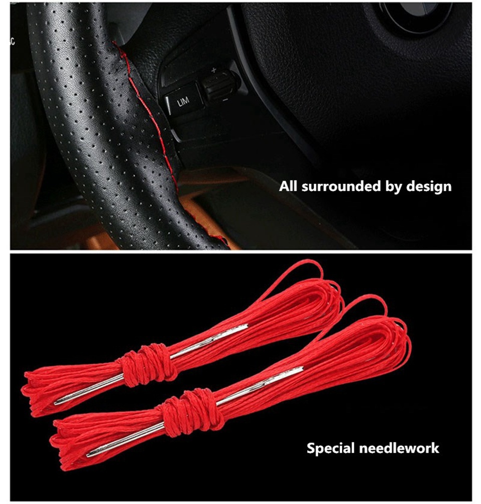 Чехол на руль автомобиля из мягкой искусственной кожи с нескользящей поверхностью, 38 см, с иглой и нитками