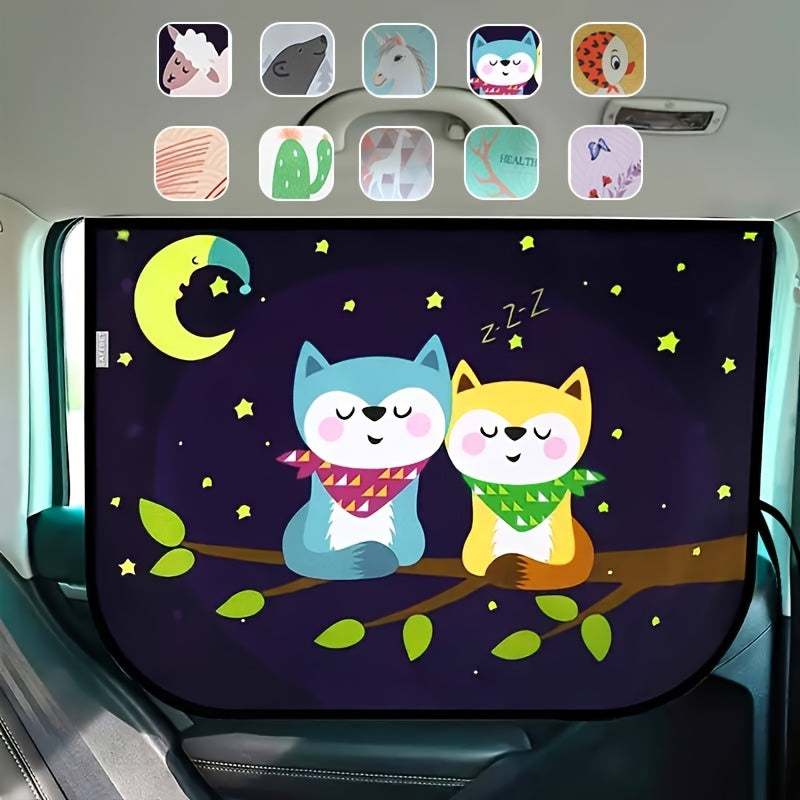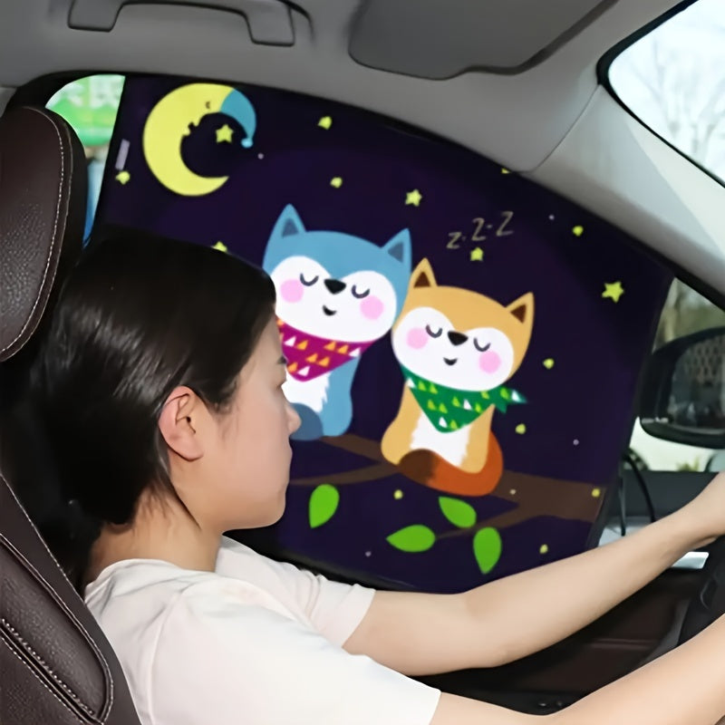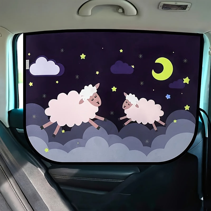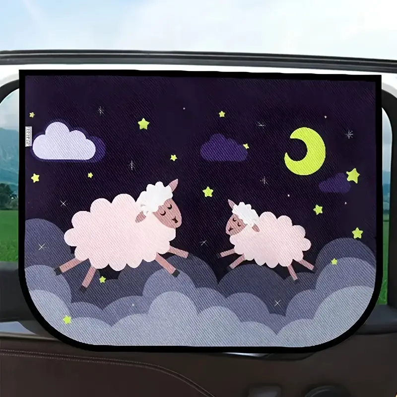 Авто-занавеска для солнца Милая кошка и бегущая овца Двухслойная теплоизоляция Синий Желтый Черный
