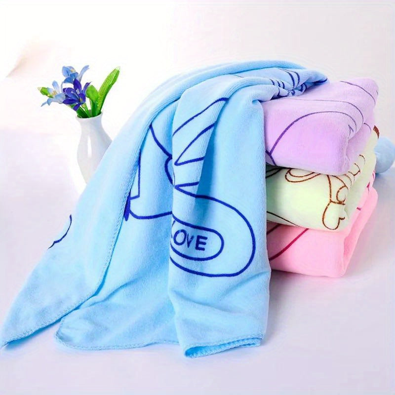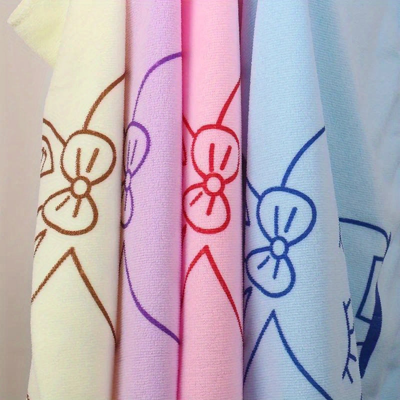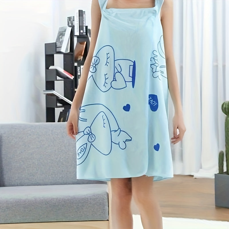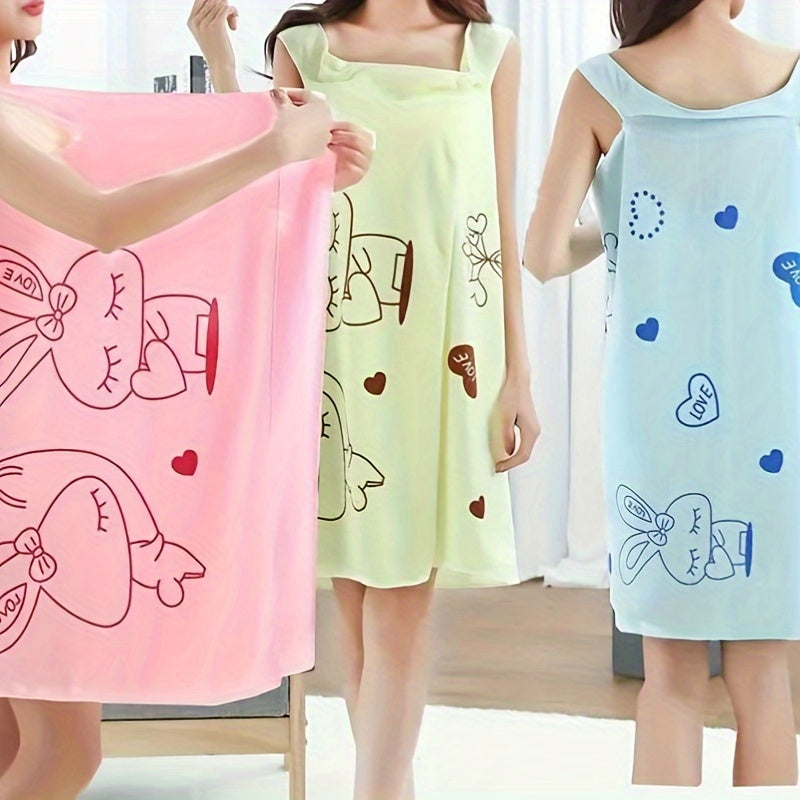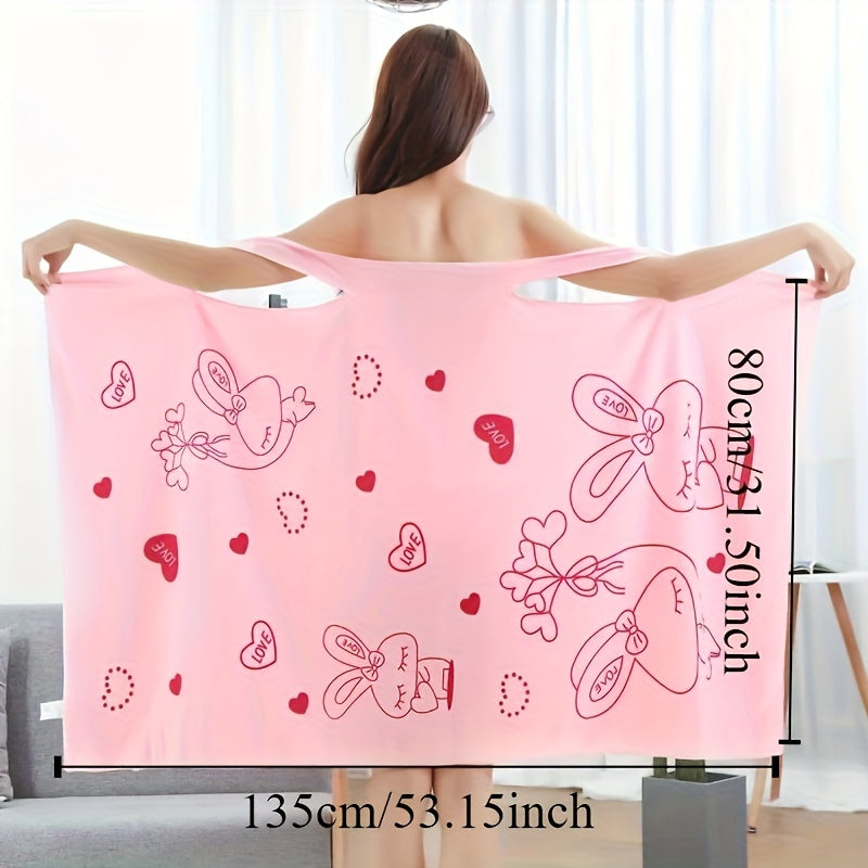 Махровое полотенце для женщин с изображением мультяшного кролика, с грудным ремешком для удобного ношения. Изготовлено из стойкого к выцветанию, впитывающего полиэстера. Мягкое, быстро сохнущее и современного стиля.