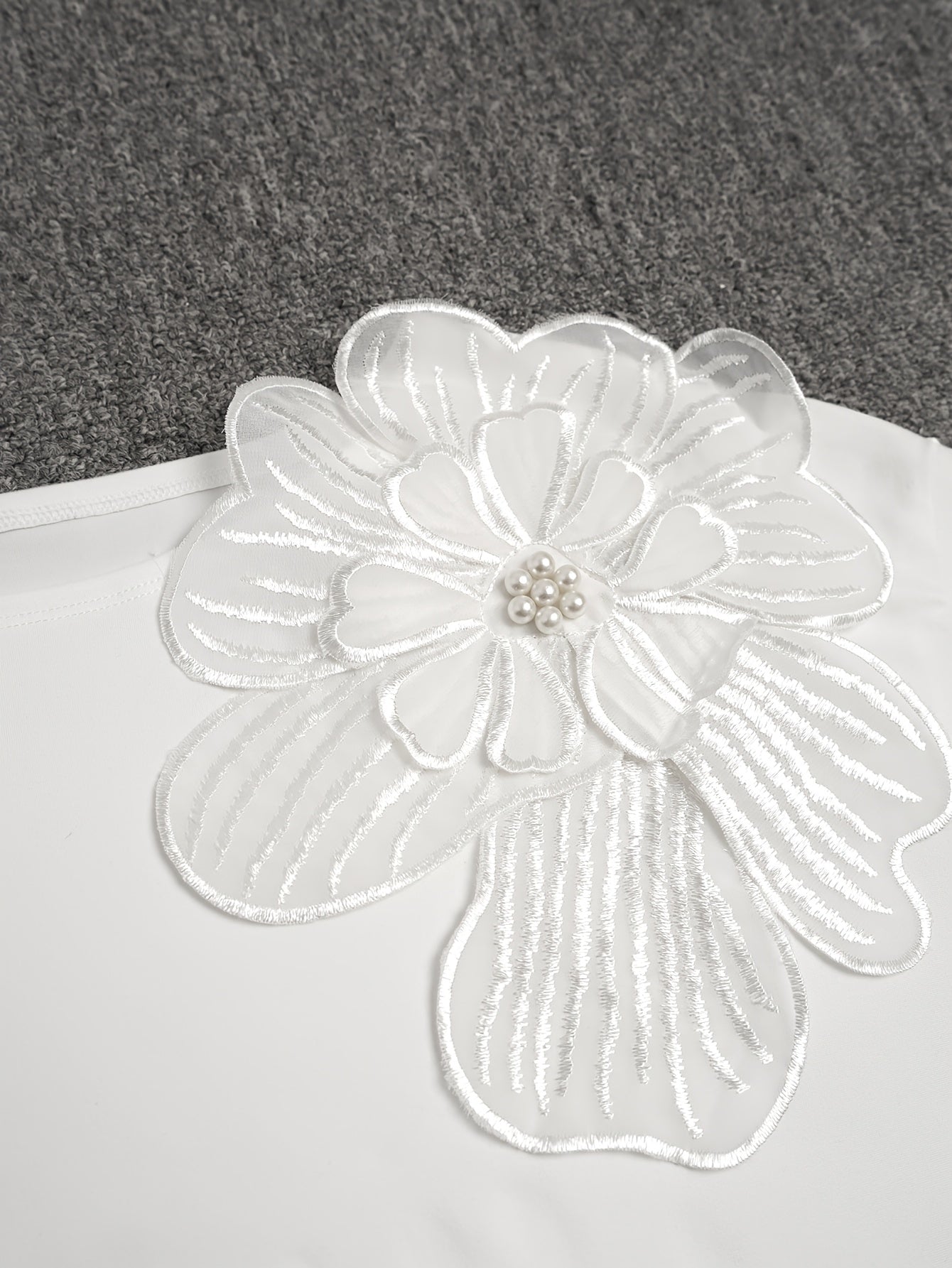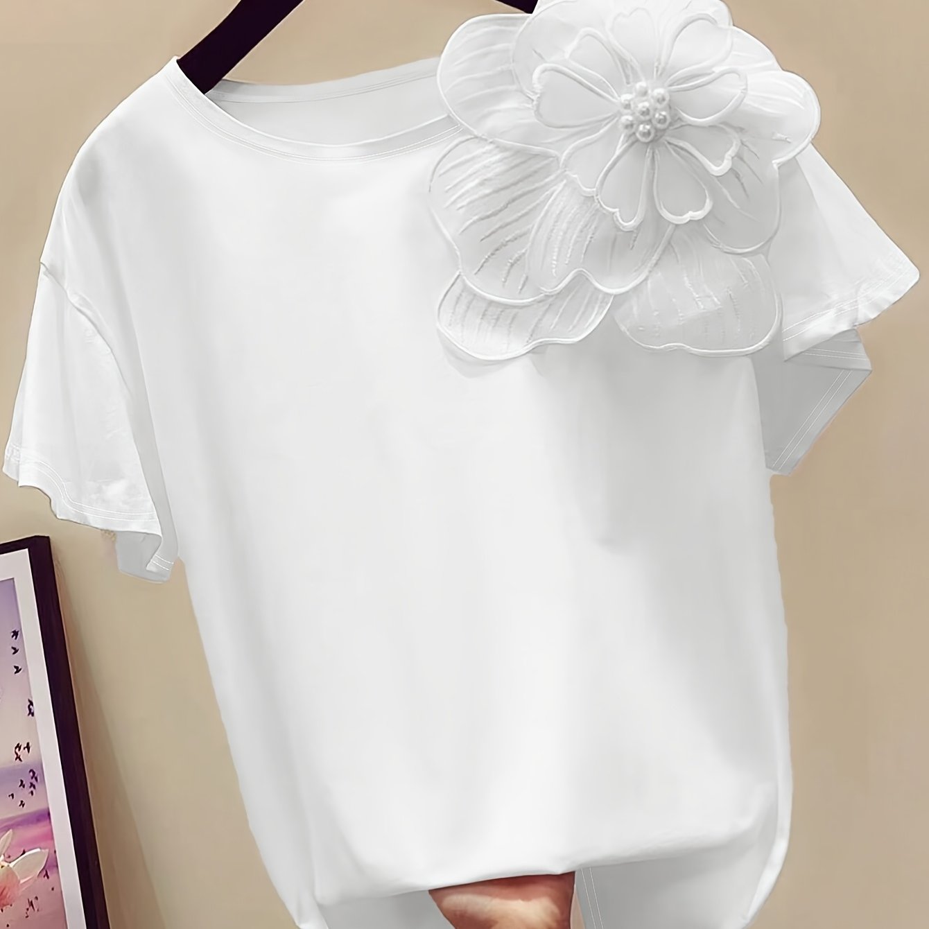Кэжуал шикарная футболка однотонного цвета с 3D цветочной аппликацией, идеально подходит для весны/лета. Машинная стирка, полиэстеровый микс.