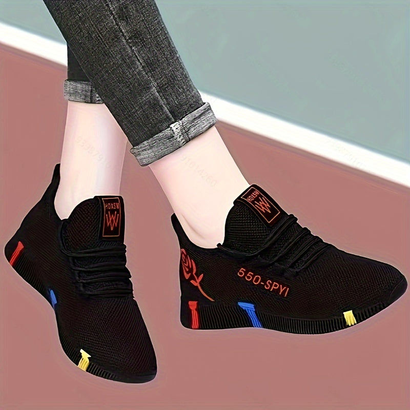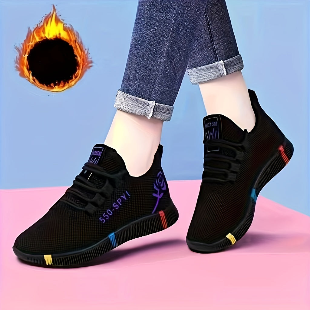 Кэжуальные шнурованные кроссовки для женщин с цветочным принтом, мягкой подошвой и нескользящим плюшевым дизайном.