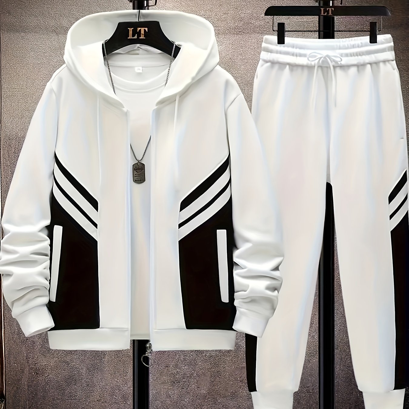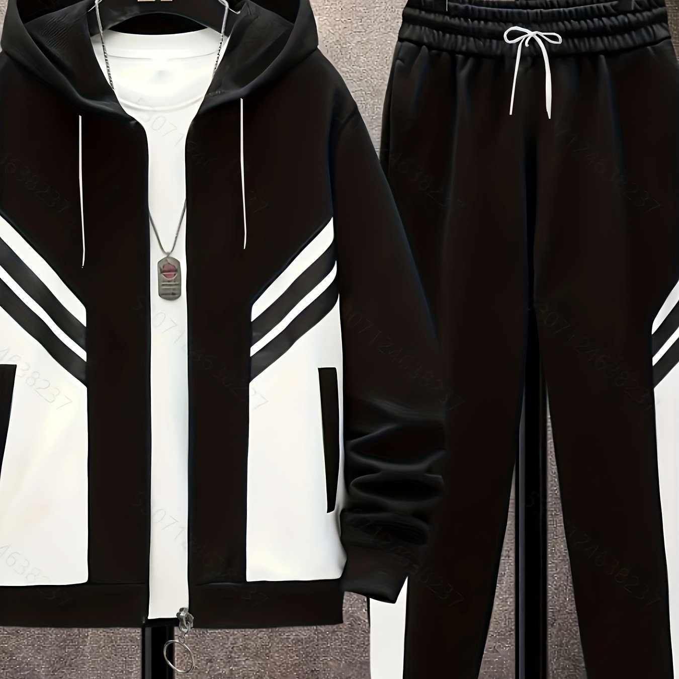 Мужской повседневный спортивный костюм из полиэстера с худи и карманом, однотонный, с длинным рукавом, вязаный материал