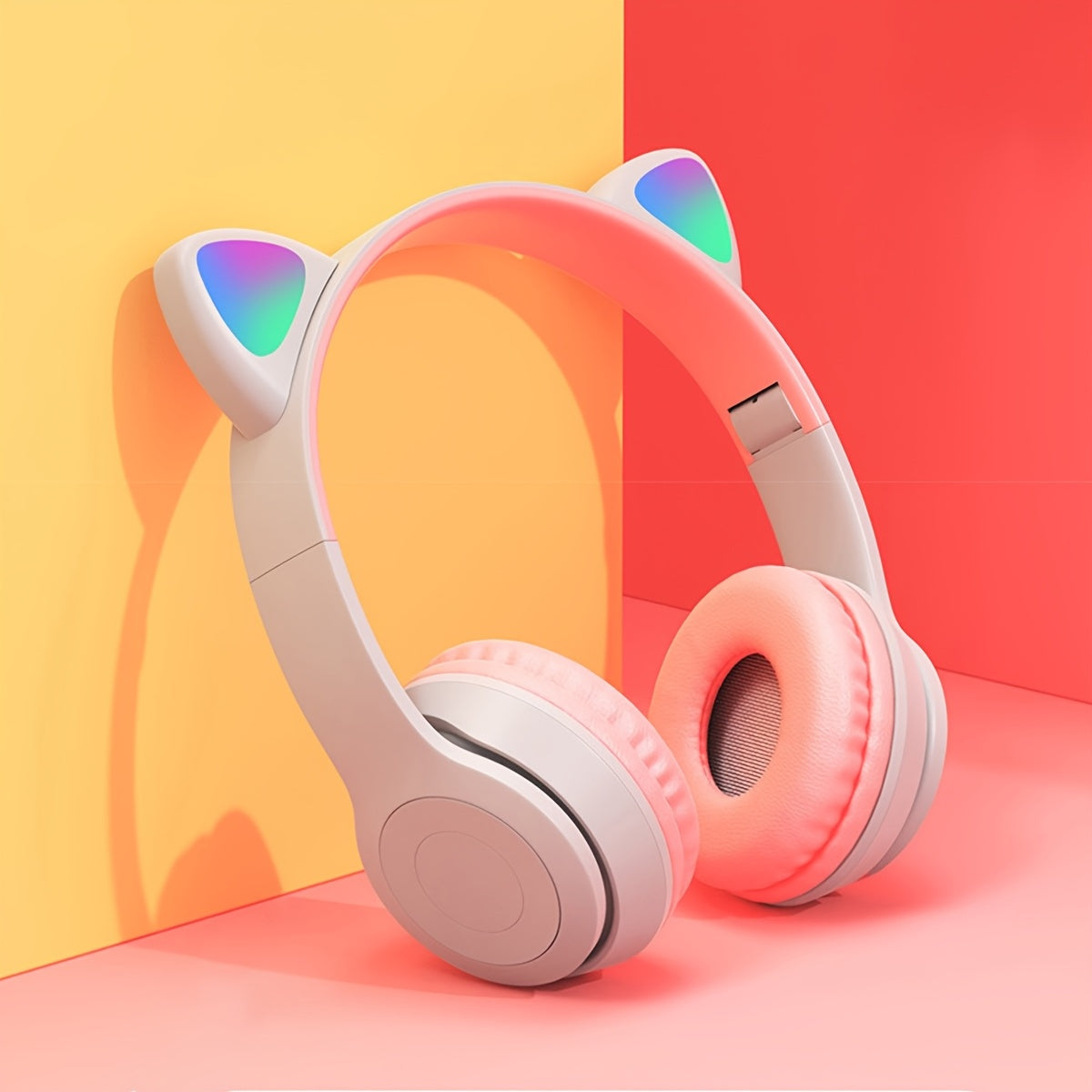 Беспроводные наушники с ушками кошки и светодиодной подсветкой, складной дизайн, управление громкостью и зарядка Type-C - идеально подходят для телефонов и в качестве подарка.