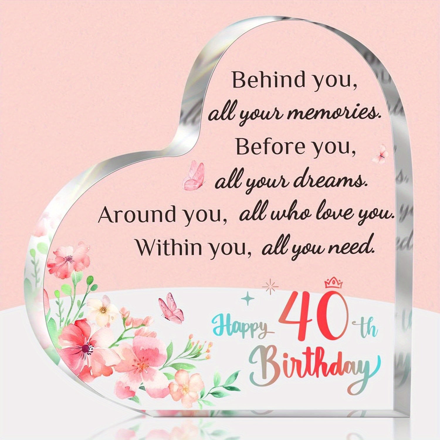 Отпразднуйте стильно с украшением в форме сердца: персонализированная акриловая памятка - идеальный подарок на 40-й день рождения для женщин
