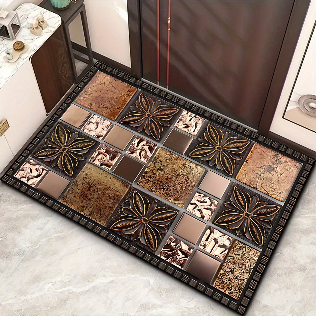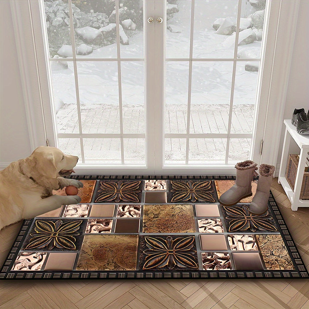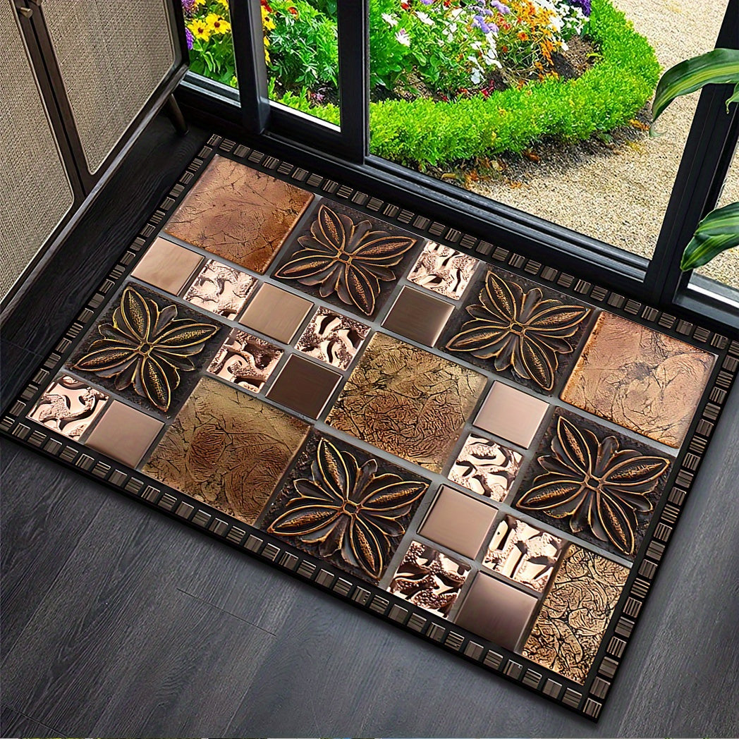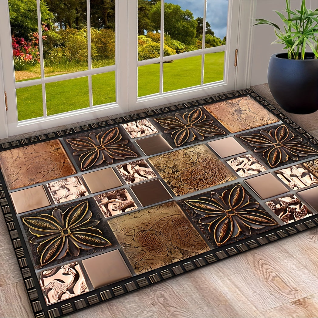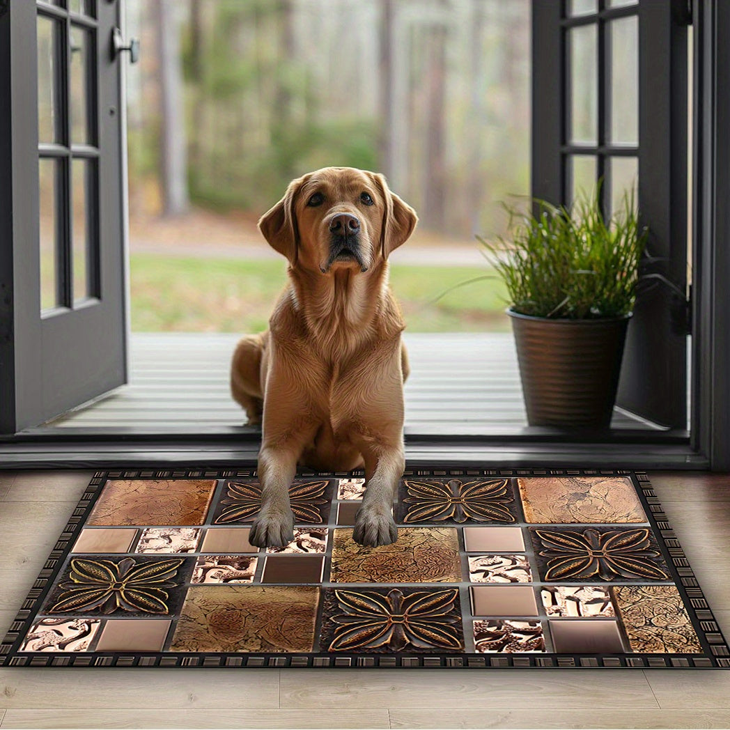 Коврик для двери с узором из керамической плитки — Добро пожаловать домой — Нескользящий, моющийся полиэстеровый коврик для прихожей, патио, сада, гостиной и ванной комнаты — Прочный, моющийся вручную входной коврик разных размеров