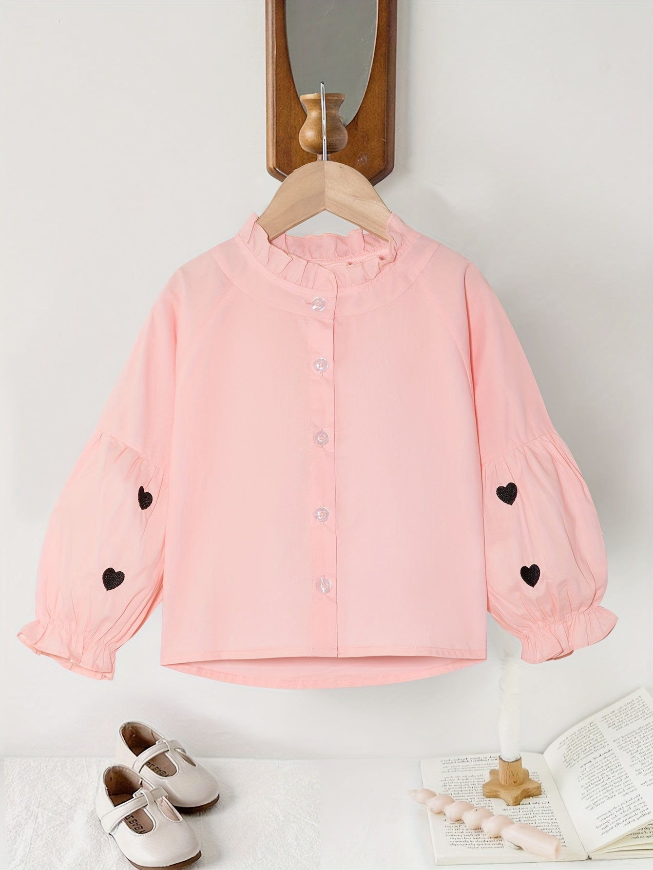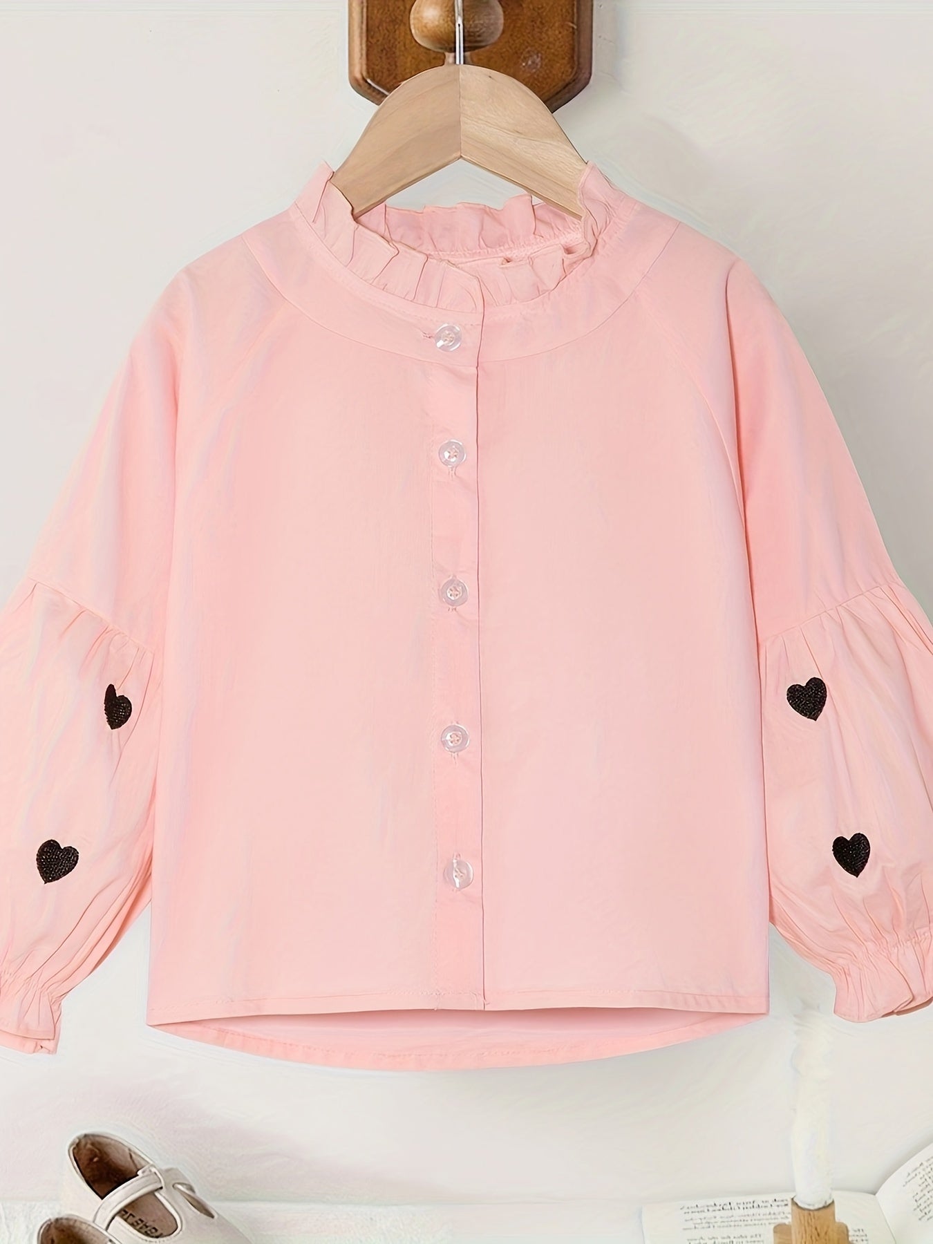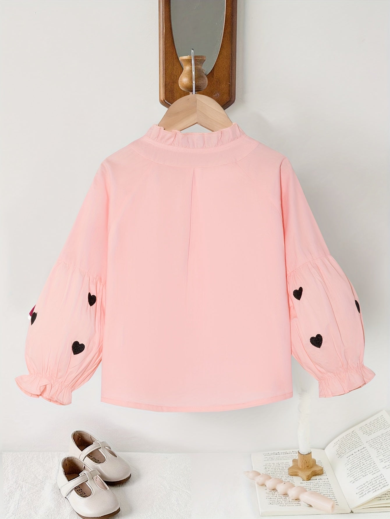 Длинная рубашка с сердечным узором и рюшей на воротнике для девочек