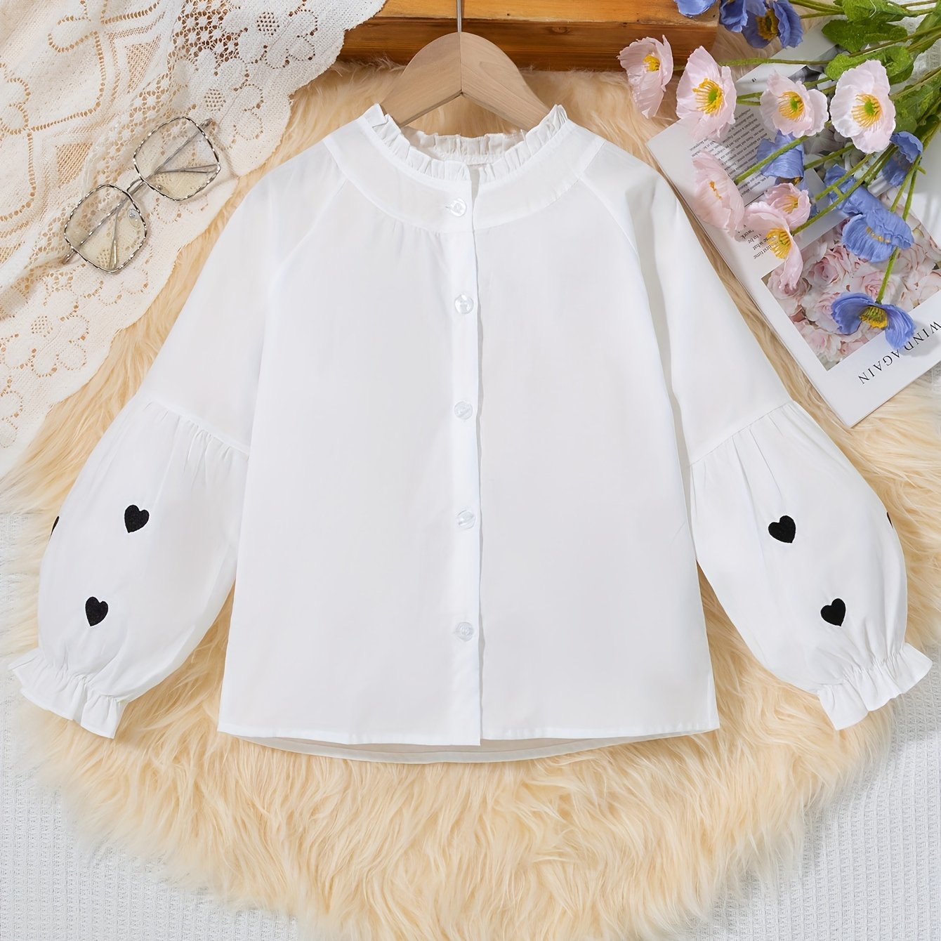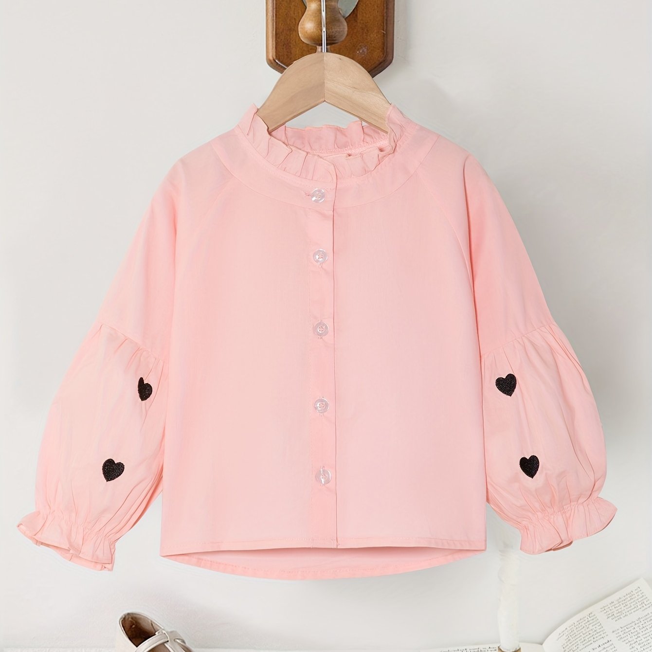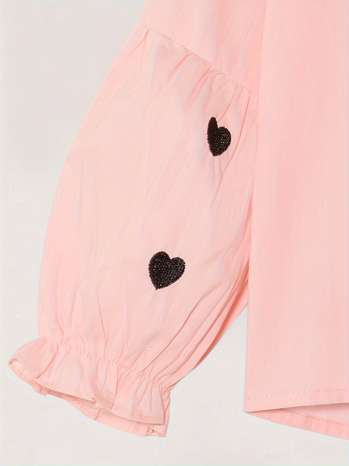 Длинная рубашка с сердечным узором и рюшей на воротнике для девочек