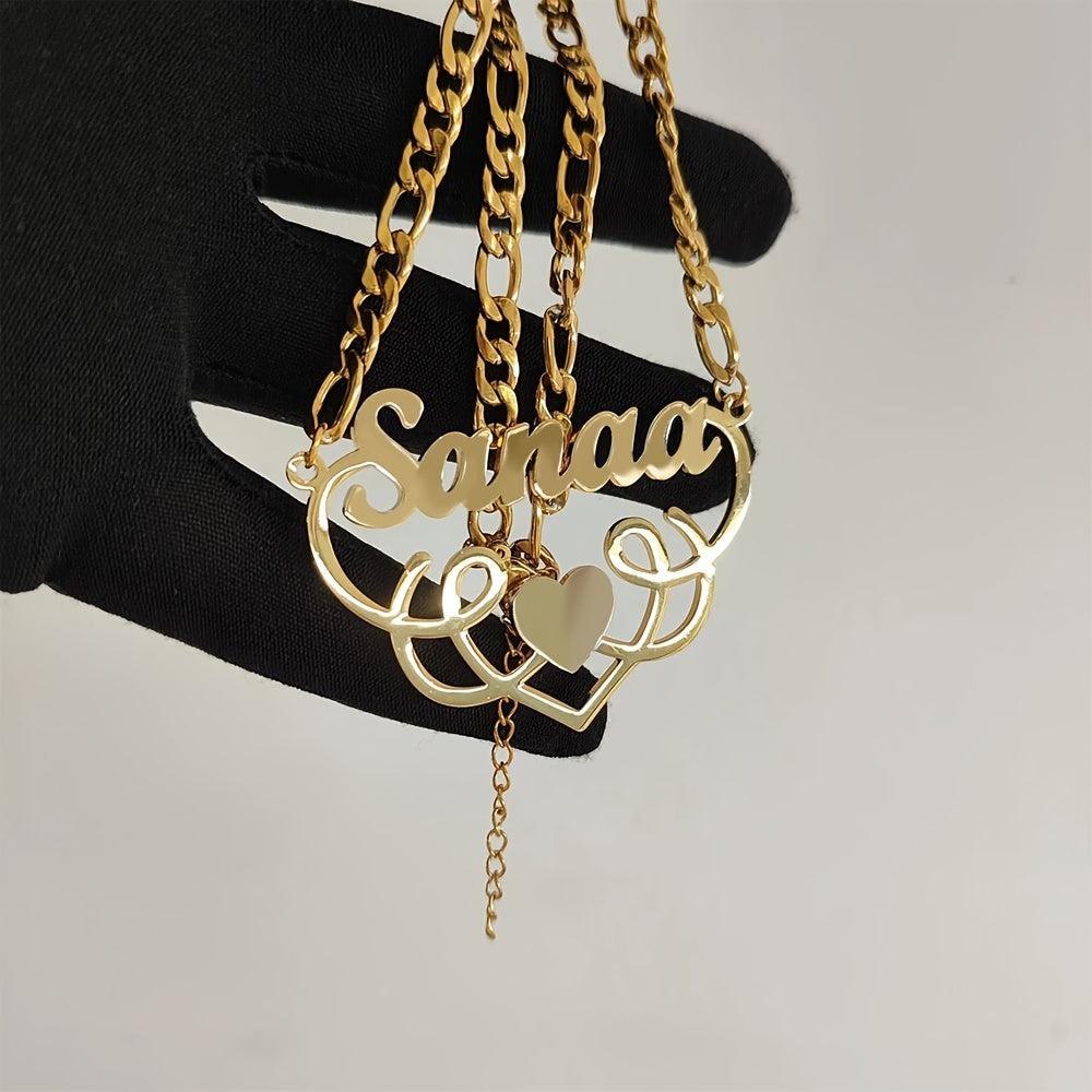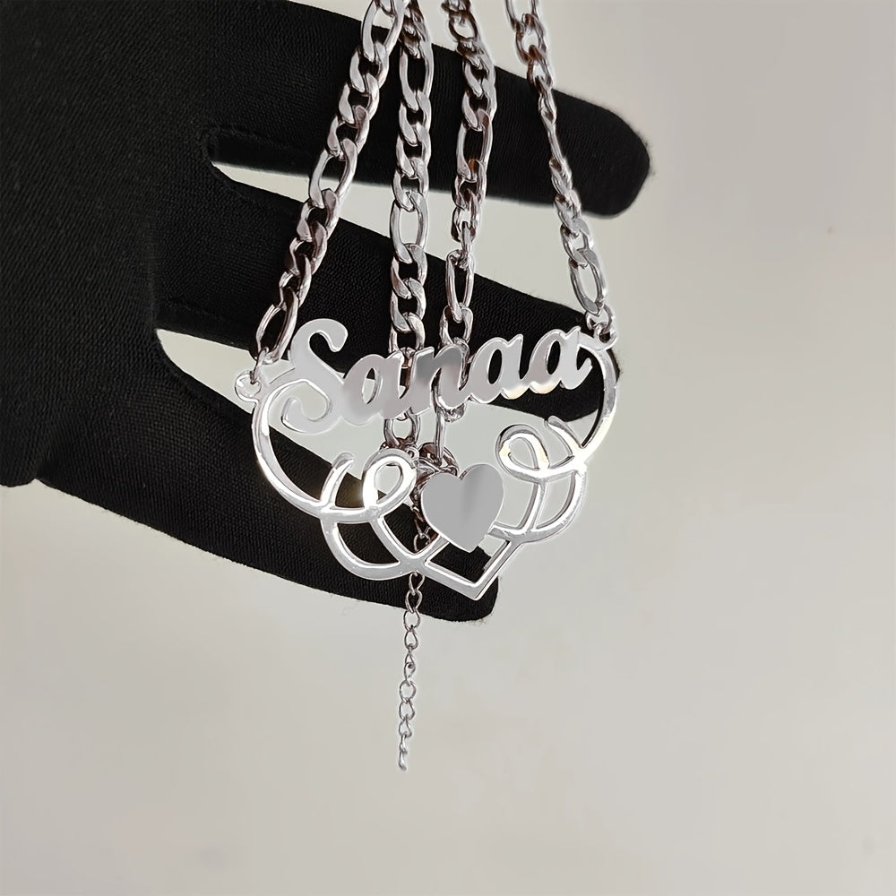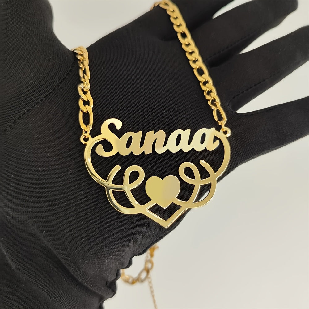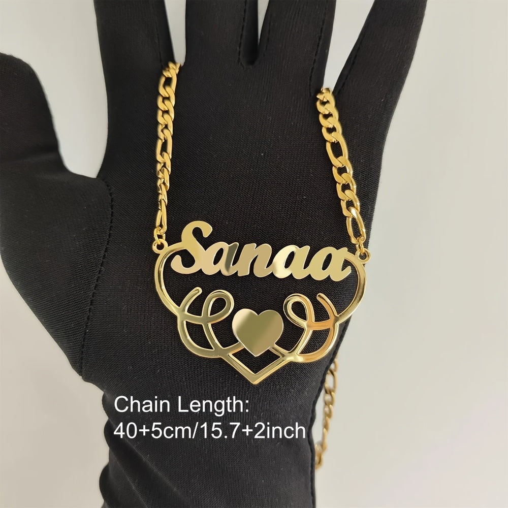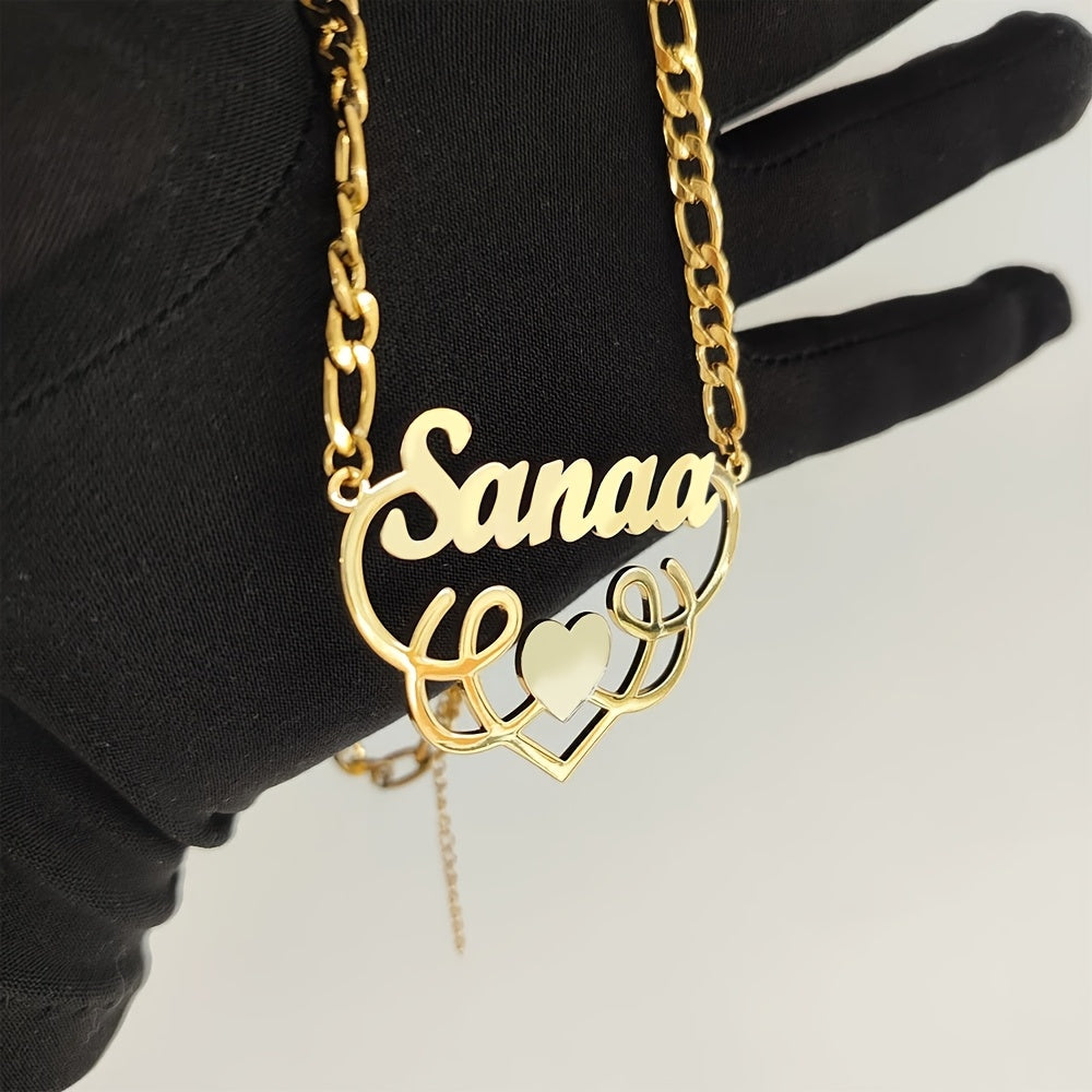Шикарное персонализированное сердечко-ожерелье - индивидуальный подвеска из нержавеющей стали, идеально подходит для повседневной носки и нарядов - женский модный аксессуар с цепочкой Feagaro, подвеска