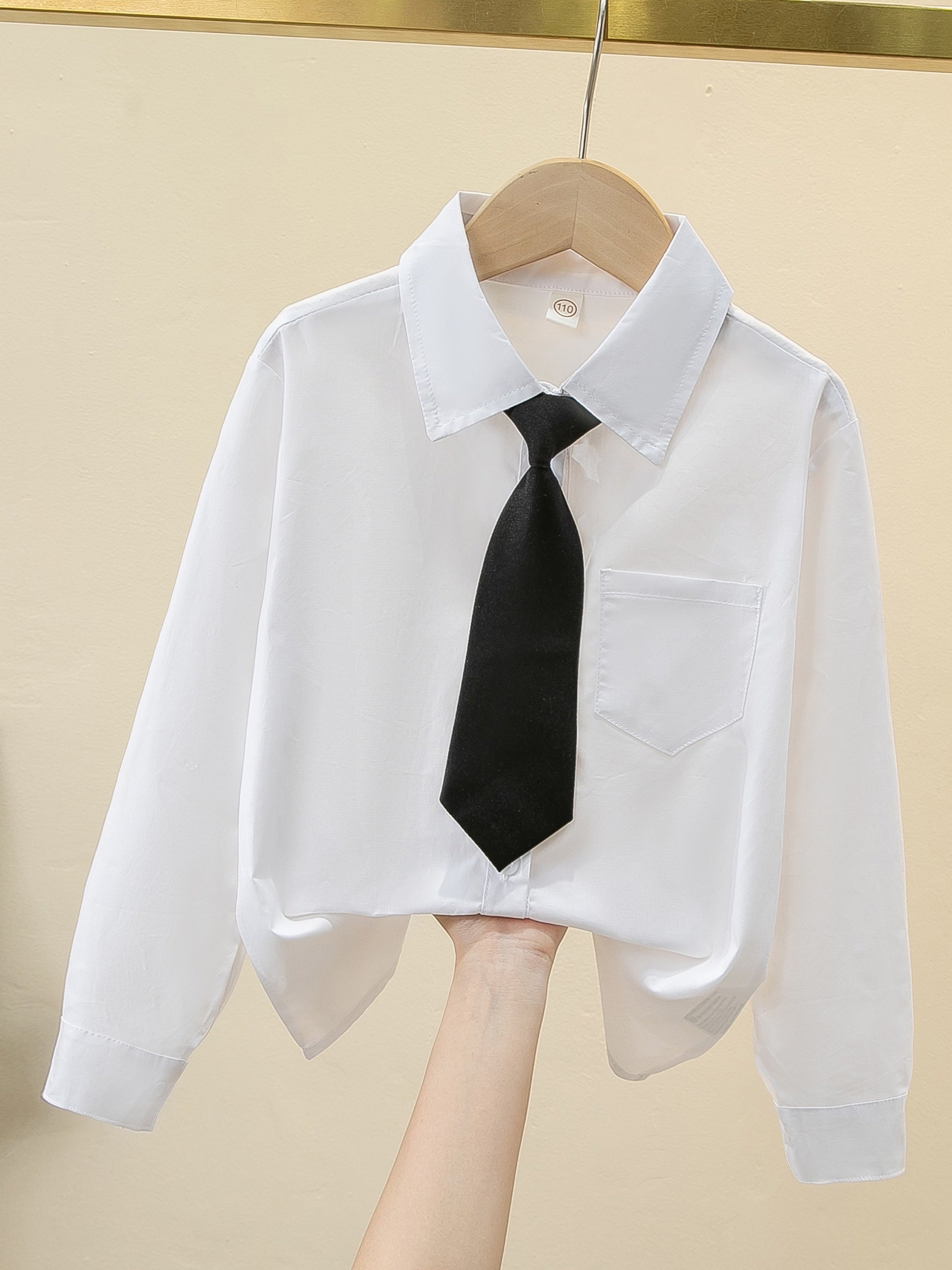 Детская белая хлопковая школьная рубашка с галстучным воротником для школы или повседневной носки