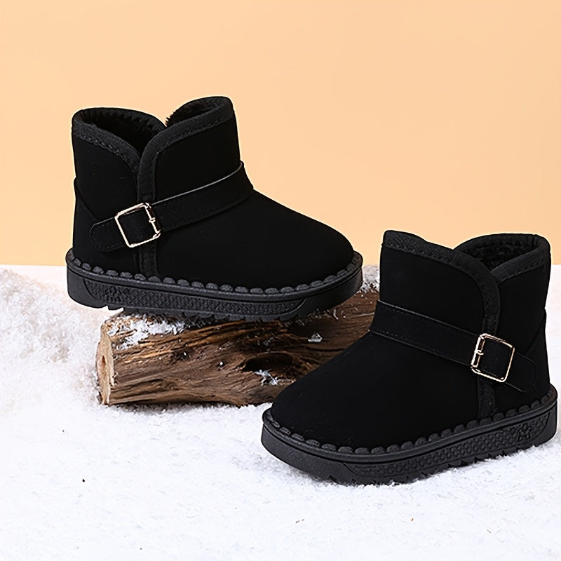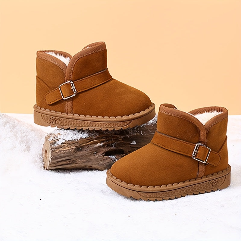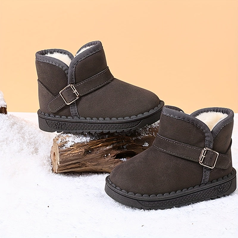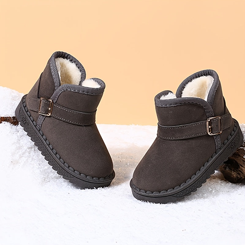 Детские зимние ботинки для мальчиков и девочек с флисовой подкладкой, на резиновой подошве, коричневые и черные